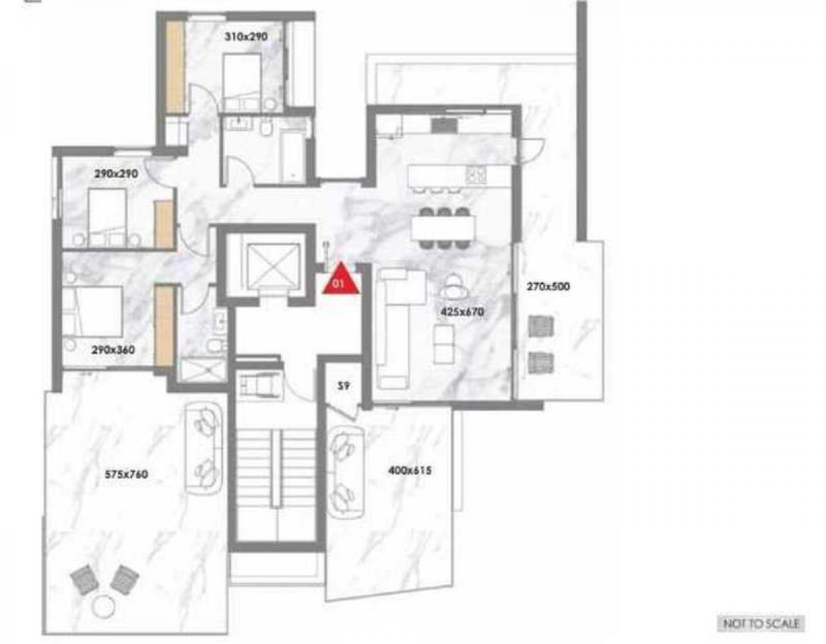 The building is located close to the center of Nicosia in a mostly residential neighborhood close to office complexes, all the necessary amenities, at only a few minutes away from the the mall of Cyprus, and with easy access to all parts of the capital.The residence comprises of five floors with nine apartments in total. The last floor of the building on which this property is located, accommodates a three-bedroom penthouse with spacious open plan interior spaces and large terraces with panoramic views.