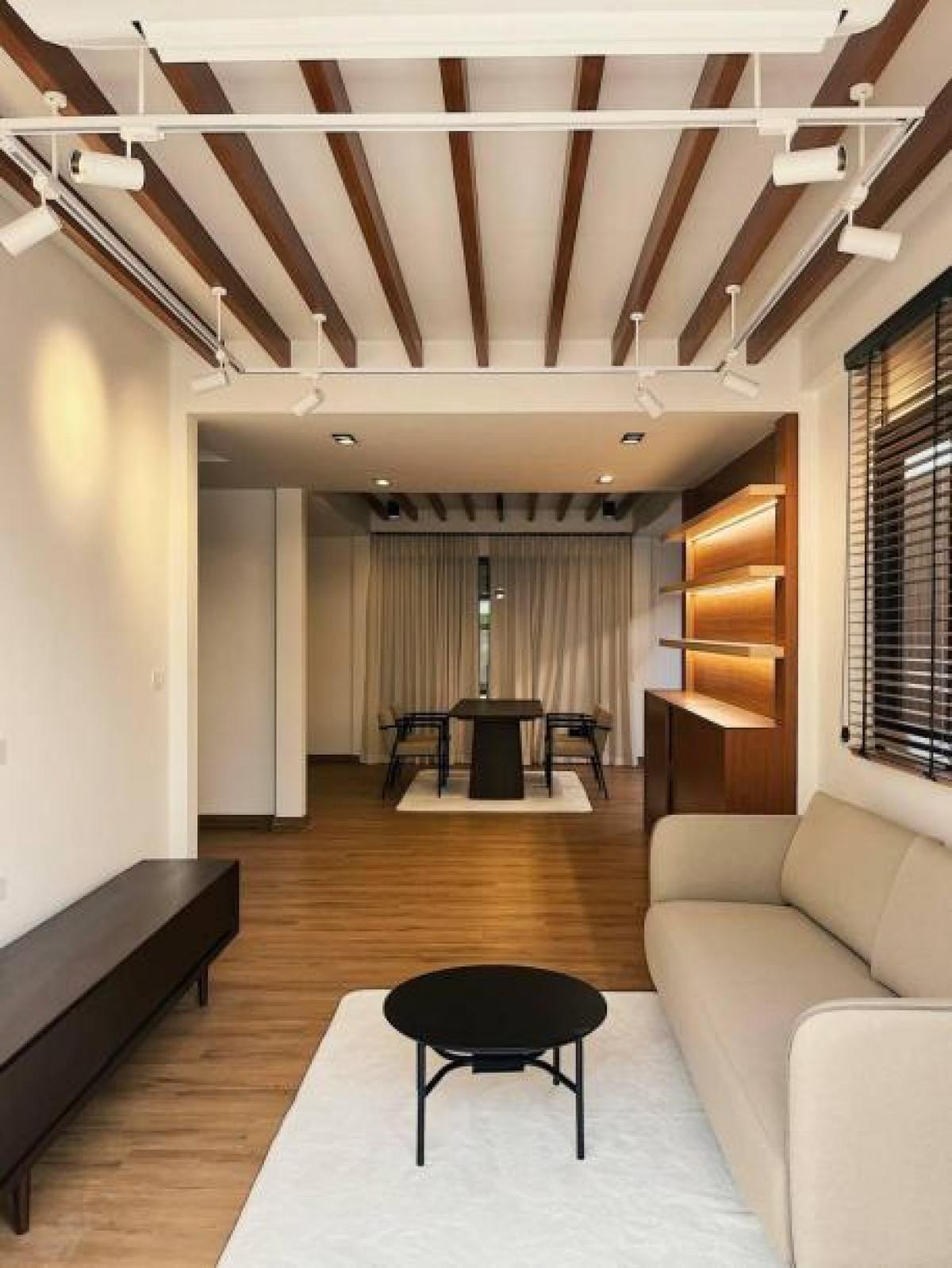 Land size 32.6 sq. wah. * Living area inside 146 sq.m. * Living area outside 74.6 sq.m. * Car parking. * 2 master bedrooms with built-in walk-in closet, 2 ensuite bathrooms, and toilet. * Laundry area. * Dining table with 4 chairs made from Oak wood. * Built-in kitchen cabinets with appliances; Microwave, oven, Electric hob, Hood, and fridge. * TV sideboard made from teak wood. * Sofa. with center table. * Built-in bed and bedside cabinet. * Built-in bathroom cabinet. * Teak wood double door. * Tempered glass balcony. Location * 2 mins to tamarind market , cicada market * 5 mins to bluport , market village , bangkok hospital * Nearby the beach only cross the road. * prime location in Huahin town located in the first soi of Ta kiab area.- * Terrace