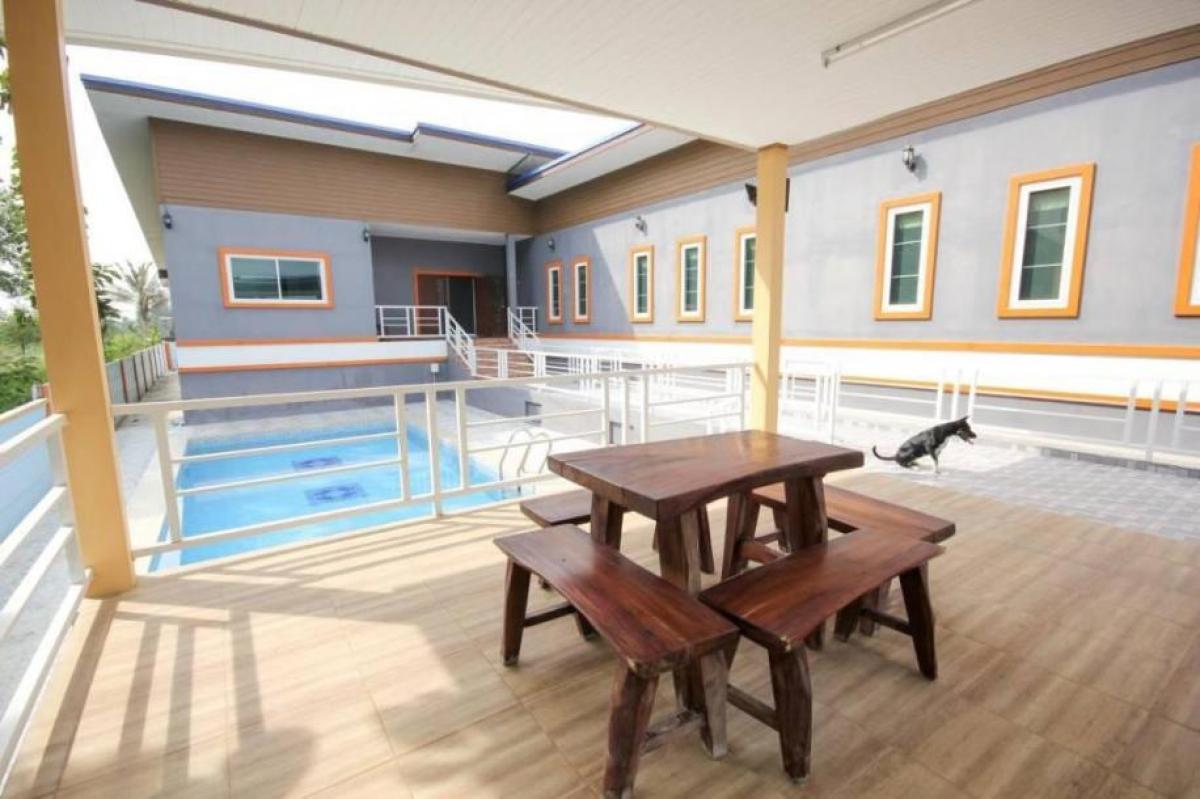Property Information: 1 Rai Land Total 606 sqm - Main building 480 sqm / guest building 126 sqm 8 Bedrooms (6 in main / 2 in guest) 7 Bathrooms + 1 toilet Seperate kitchen Indoor and outdoor storage Private 7 x 3 meter Pool Sala + covered terrace Mosqito nets in all windows Built 2007 4 Covered carpark spaces + 6 open Built 2016 8 AC units This large family home is located about 5 minutes from Majestic Creek Golf Course, 25 minutes from downtown Hua Hin and 10 minutes from Buy Pass road. Easy access if you come from south of Thailand or Bangkok region. Ownership: Thai Freehold Contact for more information!- * Parking Space