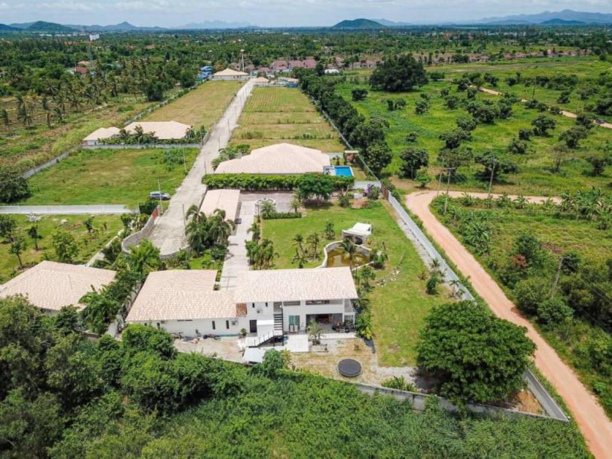 This Palm Gate Villa is waithing for your personal touch to complete. The location is just 10 min away from Hua Hin town and beautiful beach. The project has common facilities such as basket ball court and garden. The house sits on a beautiful position corner plot of large 3,154.80 sqm. land and it's easy to make a second house on the plot as well. Offering privacy with friendly surrounding. The usable area is 469.5 sqm. comes fully furnished as shown in pictures. Moreover, there is a huge green area where you can have many activities perfect for family home. Property features -5 Bedrooms -3 bathroom+ 1 toilet -Well equipped Western kitchen -Living room -6 Air Condition Units -Covered parking for 2 cars -Private Entrance Monthly fees: 3.75 baht/ sqm. Ownership: Freehold Chanote-