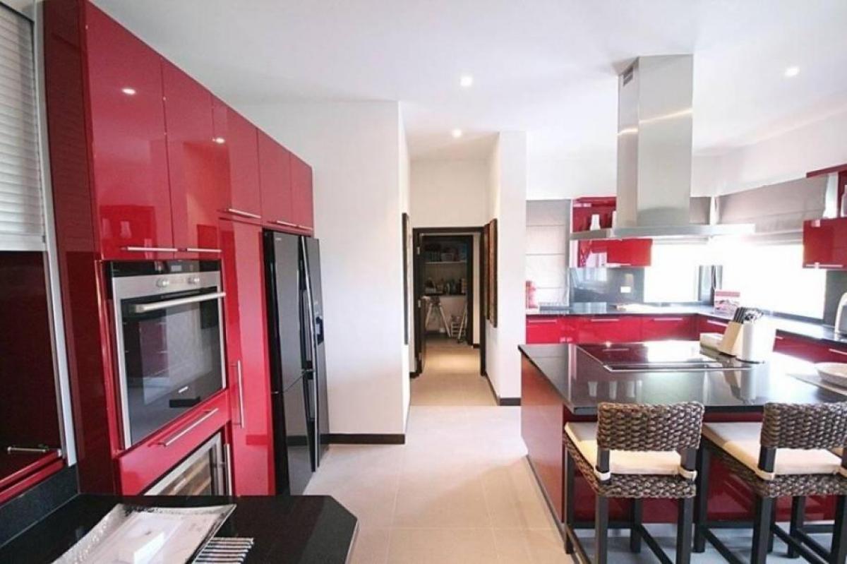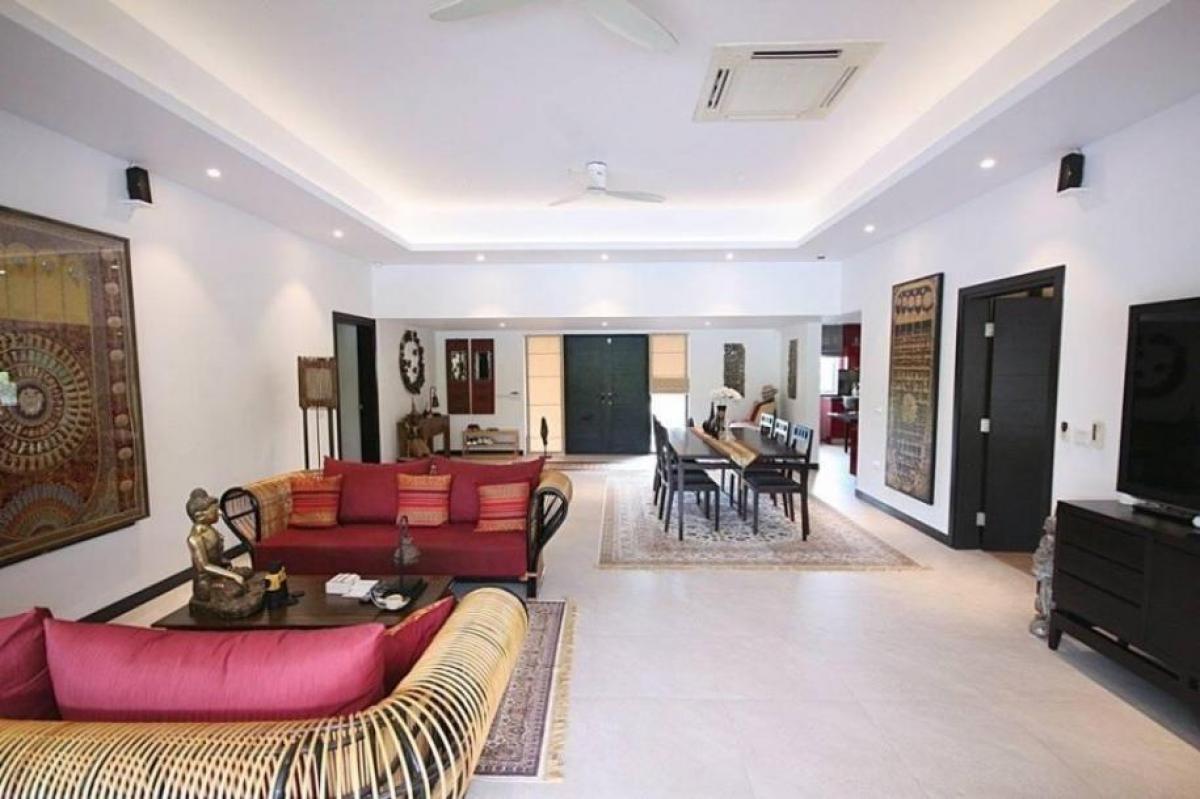 This single story 3 bedroom pool villa is situated on the Eastern side of Black Mountain Golf Club - one of the best golf courses in Southeast Asia. The pool villa is directly next to the practice and putting facilities on Black Mountain - which is some of the best practice facilities in Thailand. There are a few steps leading up from the double covered car port to the front entrance. Walking into the villa you are greeted by a large, high ceiling open plan lounge and dining area which leads onto the massive covered terrace facing the swimming pool. The kitchen is state of the art and Ferrari Red. The central kitchen island is surrounded by loads of cabinet space, all the modern appliances and a built in coffee machine. There is a lot of storage space along the side of the kitchen for golf clubs and a dedicated pantry for additional food storage. All the bedrooms are super spacious with high recessed ceilings and sliding UPVC doors facing the swimming pool and golf course. The master bedroom has a large en suite master bathroom with double sink, walk-in shower and floating toilet. The living area and master bedroom are all on the left hand side of the house, with the guest bedrooms and bathrooms situated on the right hand side of the house with a dedicated door to separate the different areas. Each guest bedroom has its own en suite bathroom and full floor to ceiling built in wardobe. The main feature of the property is the covered outdoor terrace which spans the whole length of the house and faces the golf course and has a large pond directly in front of the house. This is an excellent golf course property and is perfect for a couple, a family or a group of friends as a golf course getaway property. Black Mountain Golf Club has excellent, world class facilities such as: - 27 hole golf course that is one of the best in world. Multi award winning. - Tennis courts - Spa and massage facilities - Driving range, putting greens and practice facilities that are some of the best in Thailand. - Black Mountain Country Club offers some astounding views of the course and features one of the best steak restaurants in Hua Hin called Prime Steakhouse.- * Terrace