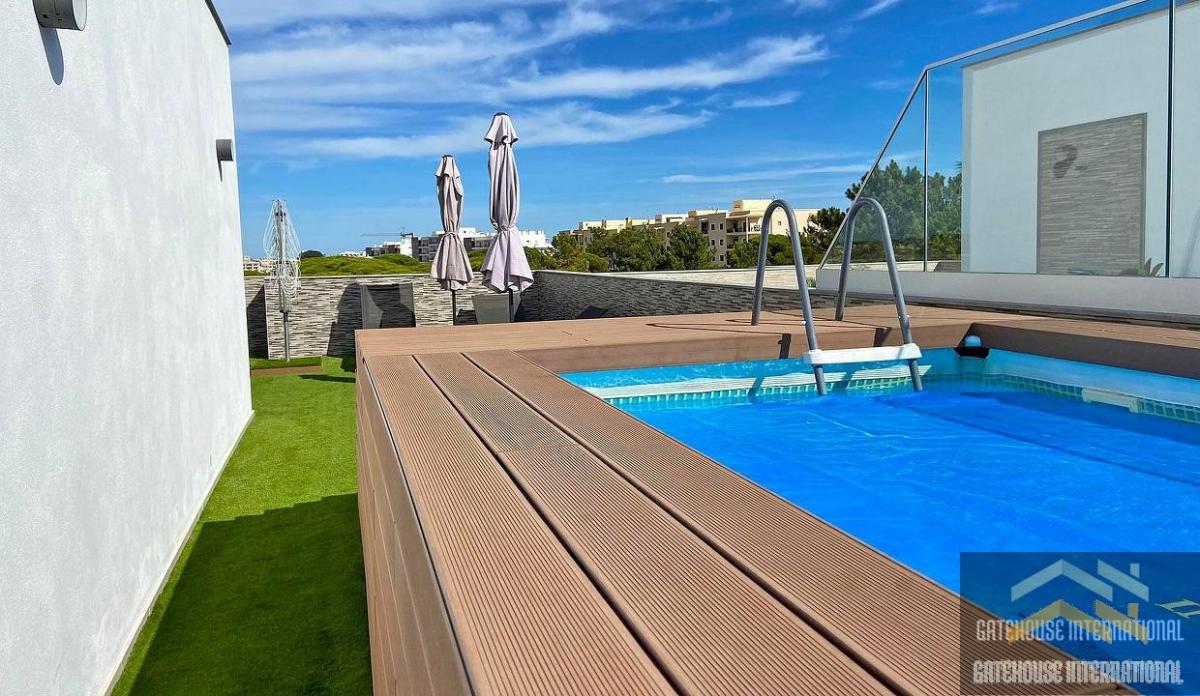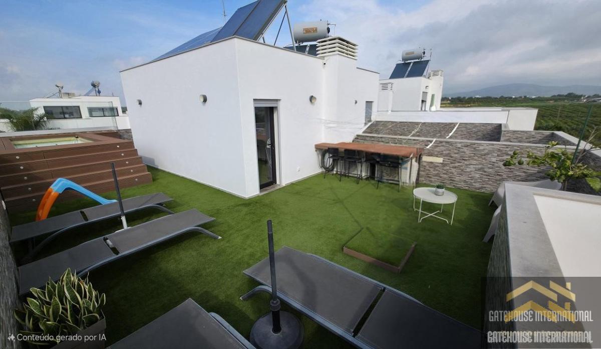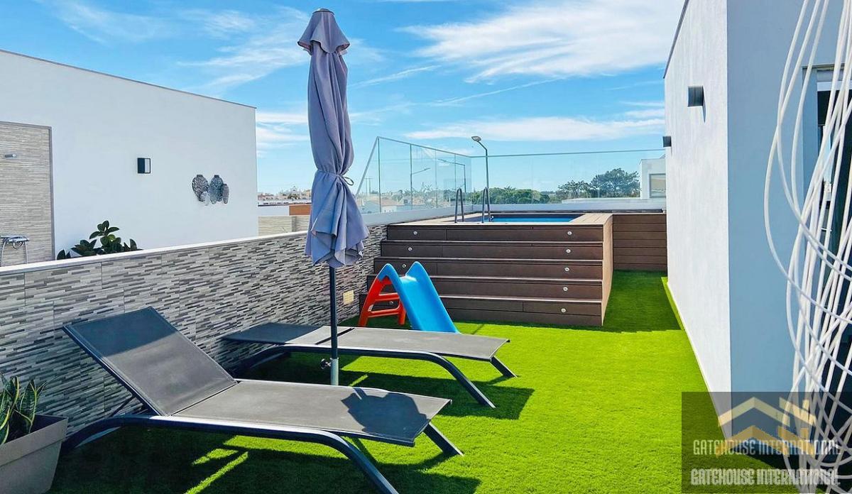 4 Bed Modern House With Plunge Pool in Olhao Algarve - this versatile modern town house with 3 bedrooms plus an office and a basement area for more bedrooms or a gym with outside areas including a roof top terrace complete with a plunge pool. The property comprises on the ground floor a bright and airy open-plan living space that seamlessly connects the living and dining areas with a stylish fully equipped kitchen with a visitors bathroom. The first floor has three good sized bedrooms with a luxury en-suite to the master bedroom with a shared family bathroom with a bathtub. in addition there is a smaller room ideal for a home office. There is a lower level basement with a garage and three versatile rooms, perfect for additional bedrooms, a home gym, or extra storage. Outside, there is a ground floor garden with BBQ plus a rooftop terrace being a true highlight with a laundry room opening out to a spacious outdoor area with a plunge pool. in brief: - entrance - lounge, diner and open plan kitchen - garden - 3 bedrooms - 2 bathrooms - office - basement with 3 rooms - garage - Laundry room - roof terrace with plunge poolFeatures