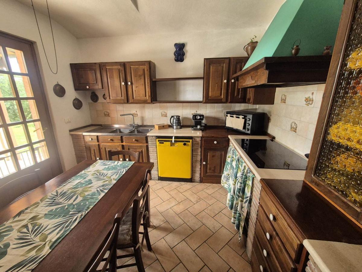The master apartment, recently built, is distributed over two levels and currently, although not formally subdivided, is divided into two units. On the ground floor: entrance from an external porch, a habitable kitchen with a stone oven, a spacious living room with a fireplace and access to the outside, a bedroom, and a bathroom with shower. On the upper floor: a living room with kitchenette and access to a balcony, 2 bedrooms with access to a terrace, 2 bathrooms, and a storage room.