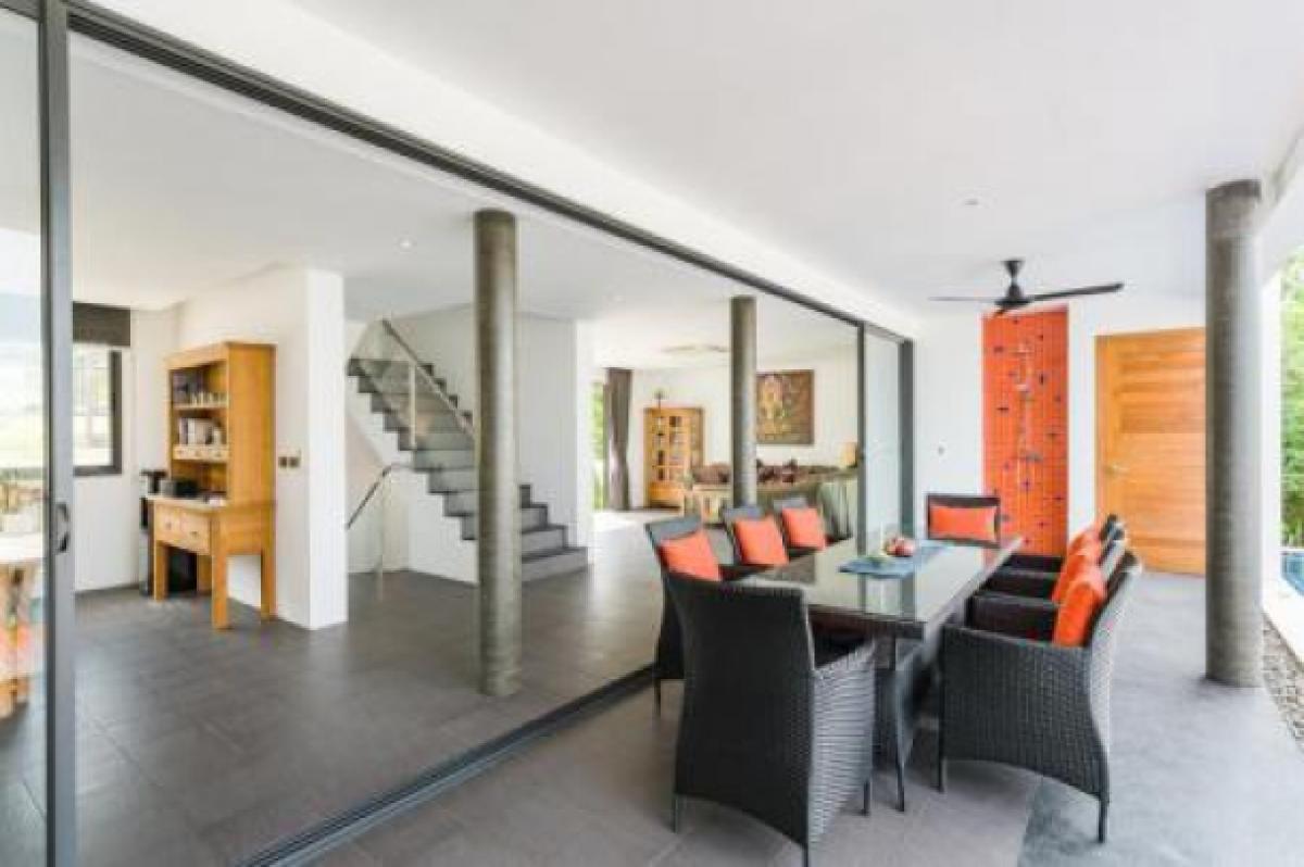 Floor to ceiling windows and folding doors throughout the property allow plenty of light inside and keep the views unobscured. This Koh Samui villa for sale comes fully furnished.