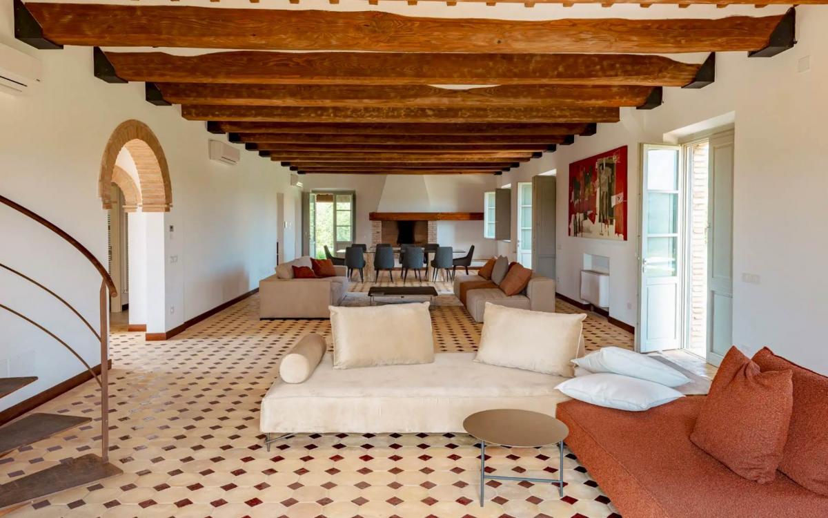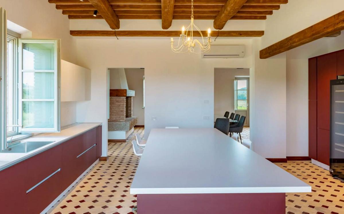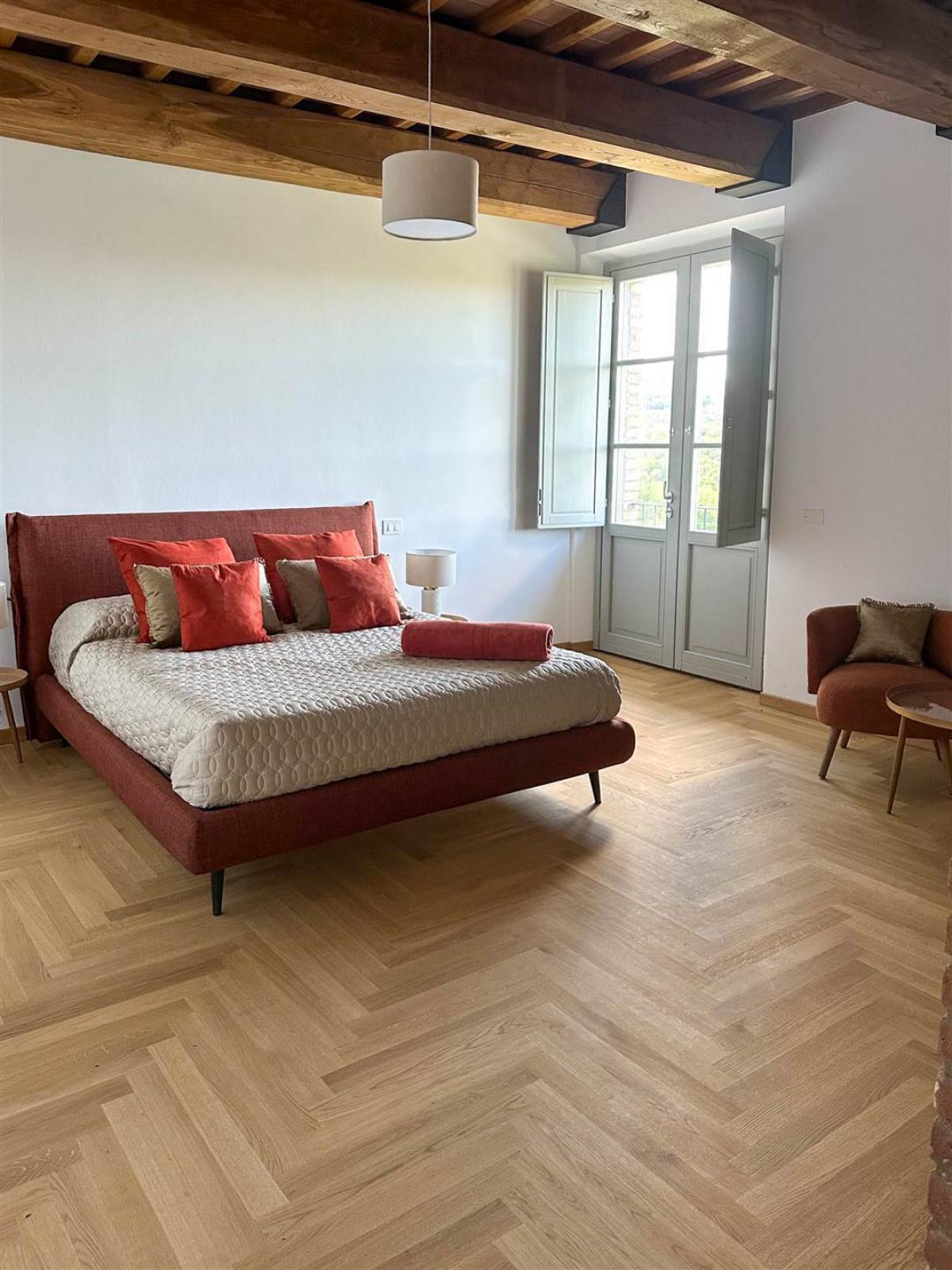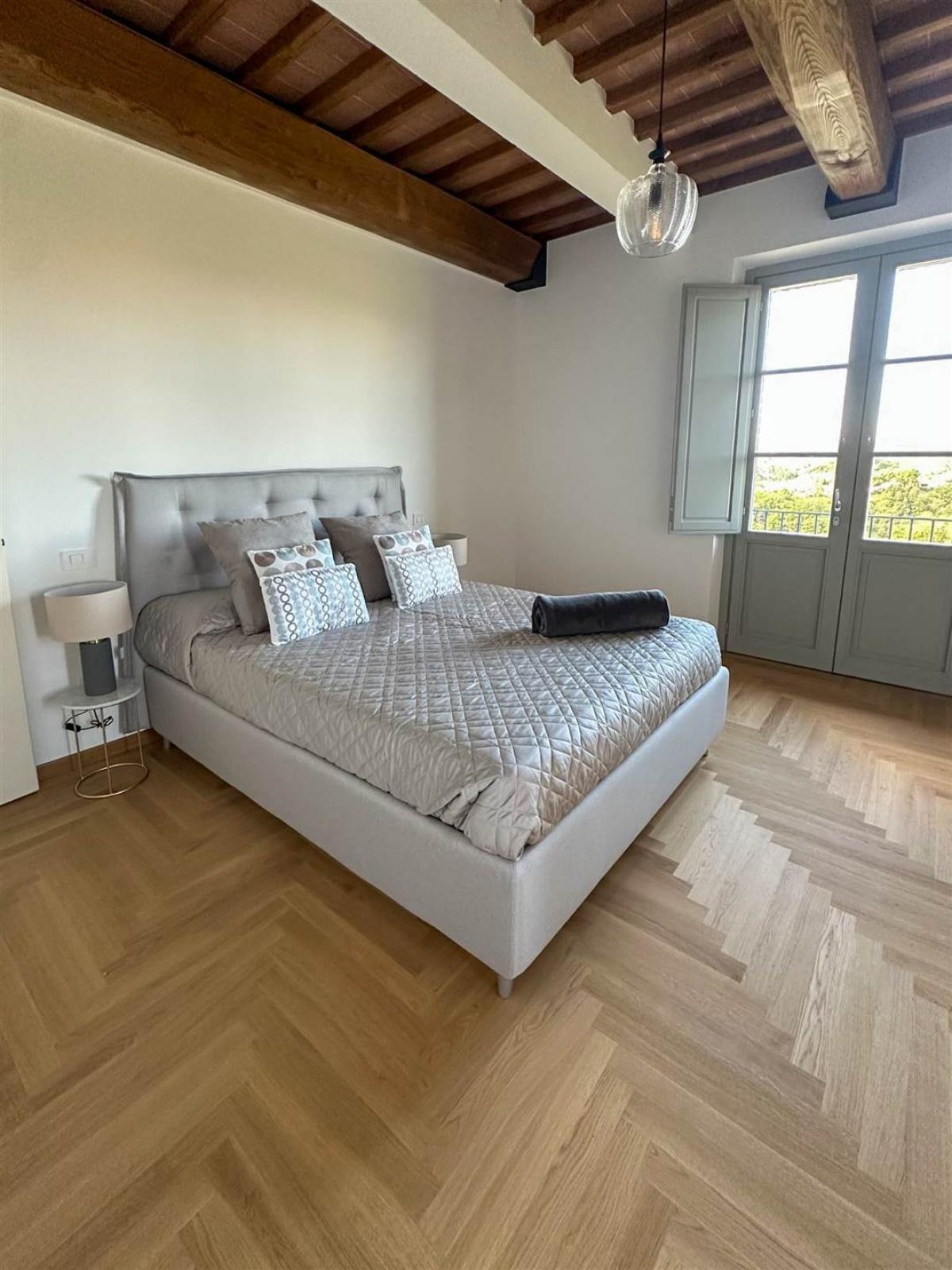 Just minutes from the medieval village of Panicale, we offer a magnificent stone farmhouse of approximately 386 sqm, recently renovated (2025) with top-tier materials. The residence spans two levels: the ground floor hosts a spacious and bright panoramic living room, featuring large windows that merge the interiors with the Umbrian landscape, a modern fully equipped kitchen with a central island, and two elegant guest bathrooms. The first floor houses the sleeping area, consisting of four double bedrooms, each featuring an en-suite bathroom with an exclusive design, and a functional laundry room. Finishes include premium flooring on the ground floor and elegant parquet in the sleeping area, with ceilings restored to preserve their original character with exposed beams. The property is equipped with a heat pump, air conditioning, and double-glazed windows with mosquito nets.