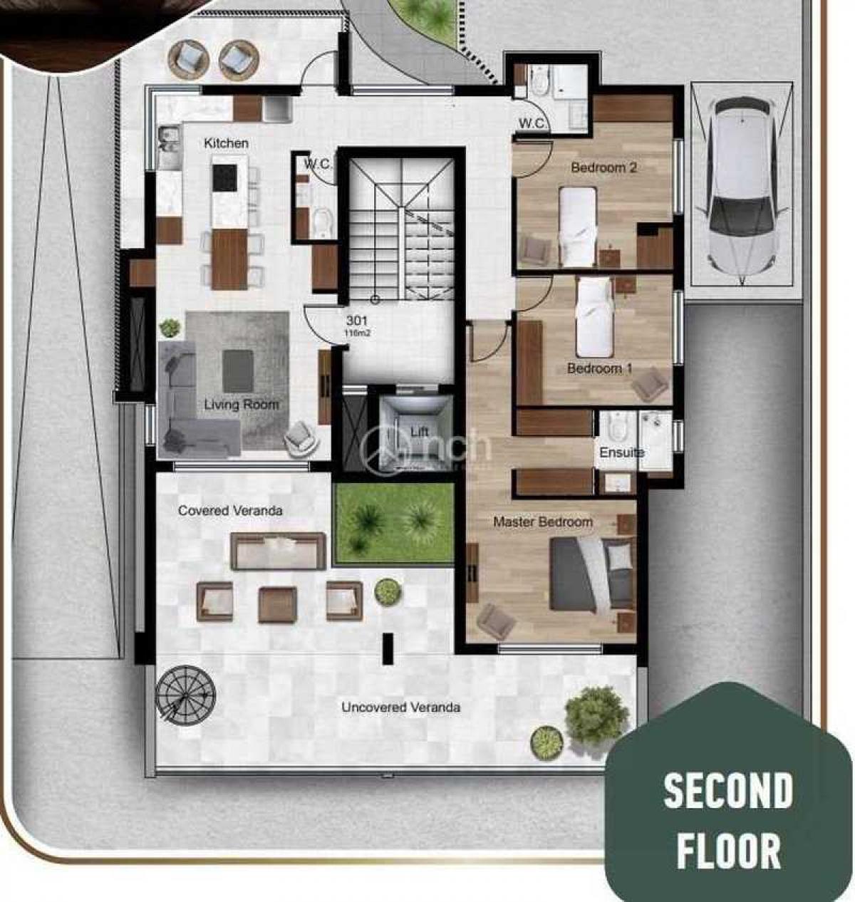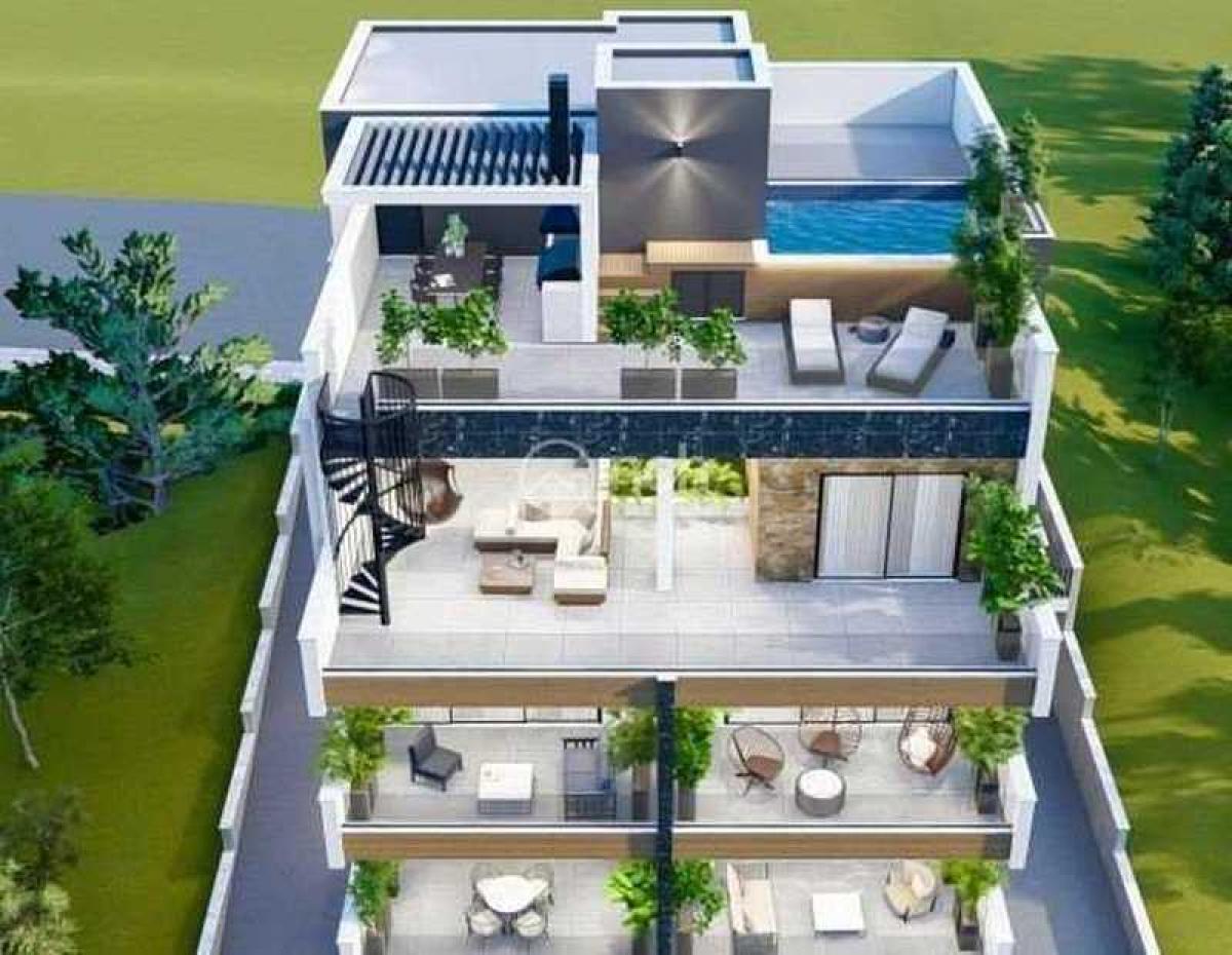 Three bedroom apartment for sale in Panthea, Limassol.The apartment consists of 3 bedrooms, 1 en-suite bathroom, 2 guest bathrooms, open plan living room and kitchen, covered and uncovered veranda and private parking space. It has 117m2 of internal area with 46m2 of covered veranda, 31m2 of uncovered veranda and 100m2 of roof garden with private swimming pool. It will also have storage room and covered parking space.