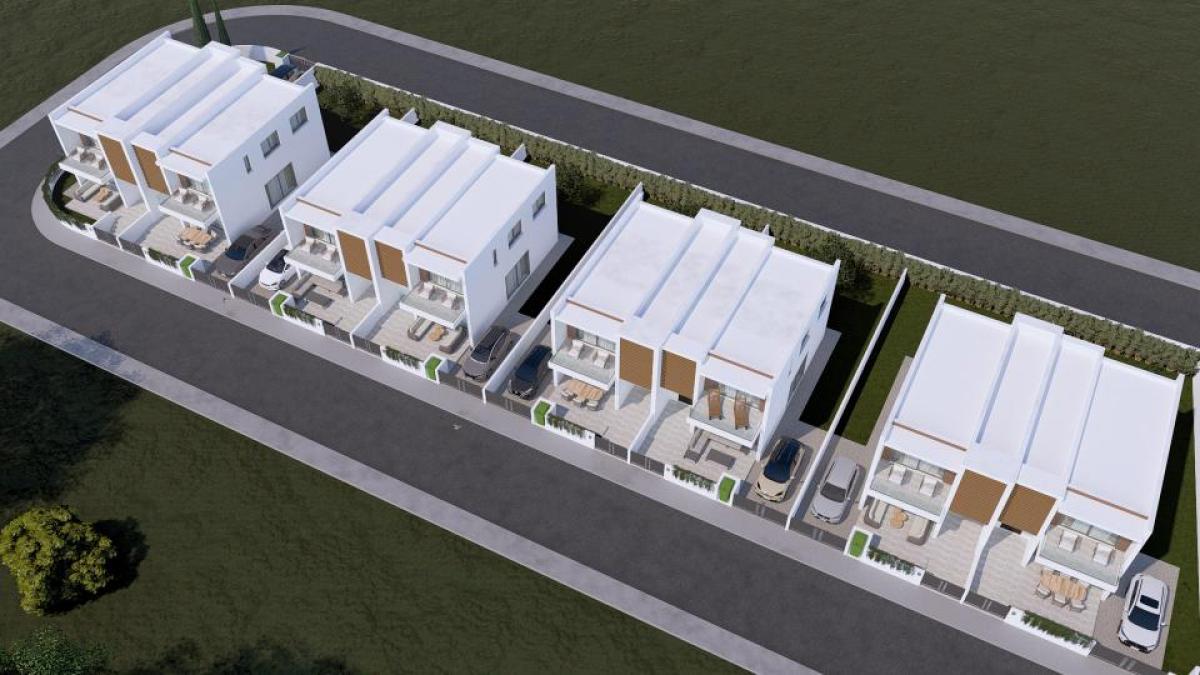 Tucked away in the serene yet vibrant area of Geroskipou, this OFF PLAN development is a contemporary residential project offering eight elegantly designed semi-detached villas that perfectly balance style, comfort, and functionality.Each two-story villa features 146 sq.m. of thoughtfully designed living space, complemented by 15-17 sq.m. of covered verandas and spacious private plots ranging from 234-248 sq.m. The open-plan design allows for seamless flow between the kitchen, dining, and living areas, creating a bright and inviting atmosphere.