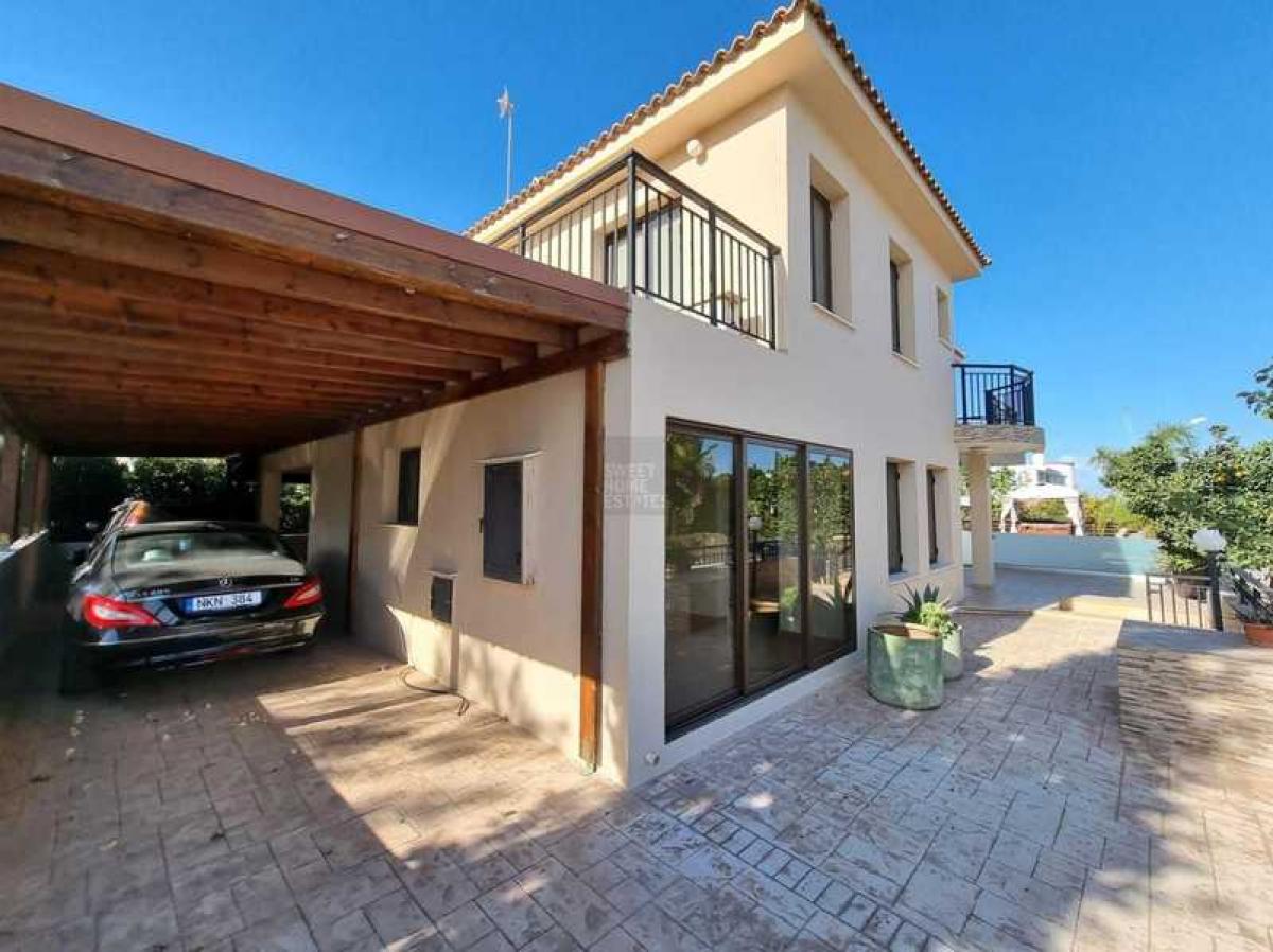 Located in a nice and quiet residential area in Paralimni, Famagusta, approximately 400m from Paralimni's Lyceum, about 500m from Police Headquarters Famagusta and 1km from Deryneia's roundabout.The property is a 5-Bedroom house on a plot of 524sqm. The house on the exterior consists of a large veranda, a swimming pool (side 10x4), a jacuzzi, a 3-car parking space, as well as 160sqm of covered Pergolas that provide shade across the whole back side of the house. The ground floor of the property consists of an open plan kitchen/dining area, storage area/laundry, a movable Island which is perfect for gatherings/parties, a large living room, a TV room, a bedroom, and a guest WC. Following the marble staircase, on the first floor there are 4 bedrooms, a full bathroom/shower and an attic for storage place. The master bedroom is ensuite and also enjoys walk-in wardrobe. All bedrooms enjoy windows to the opposite sites of the rooms and provide the bedrooms with brightness, all the bedrooms also have a balcony with great views. The property also enjoys sea views!