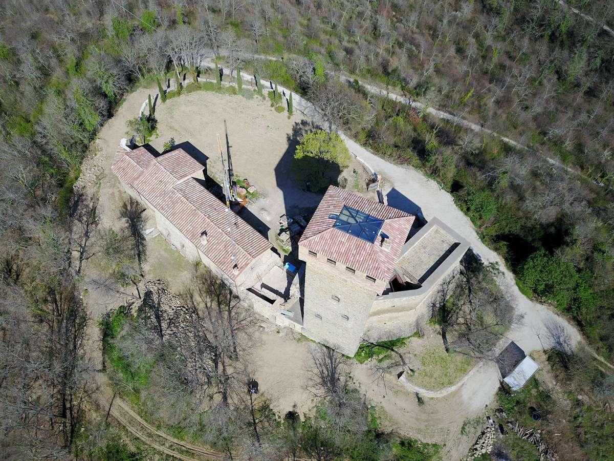 The quadrangular tower is sandstone with six-pointed openings and arranged on 7 levels. It culminates in a large, bright room of 70 sqm with panoramic views. The glass ceiling at the top of the tower floods it with light. The 2 buildings on both sides of the tower are arranged on 2 floors and each feature cotto floors, antique fireplaces, exposed wooden beams. The remains of the original hamlet and walls are still visible.
