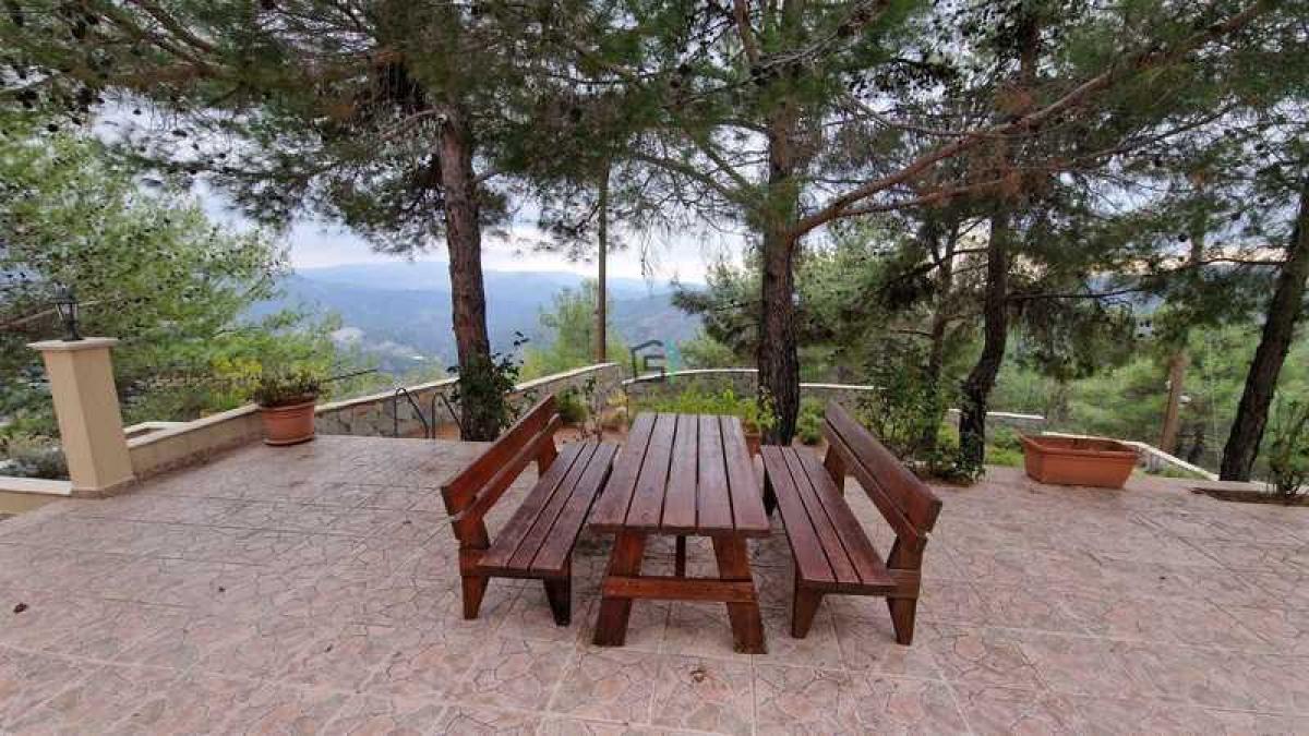This cosy ground-floor 3-bedroom house is located just outside the picturesque village of Pelendri, situated under the Troodos mountain range. Built-in 2012 this traditional-style property sits on a hill in the shade of pine trees and enjoys stunning views of the surrounding villages and countryside. It offers open-plan living space on the ground floor which consists of a living-dining room with a fireplace and a kitchen. A short flight of stairs leads to 3 bedrooms, a family bathroom, a shower room and a small laundry room. Externally, the residence is in excellent condition and has 2 store rooms and a small gazebo on the side with covered parking for 2 to 3 cars.Property features: