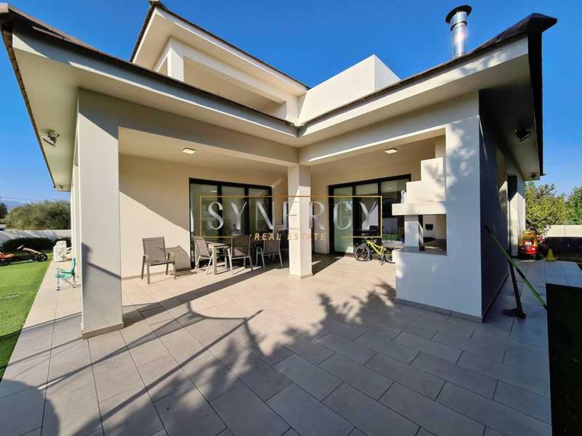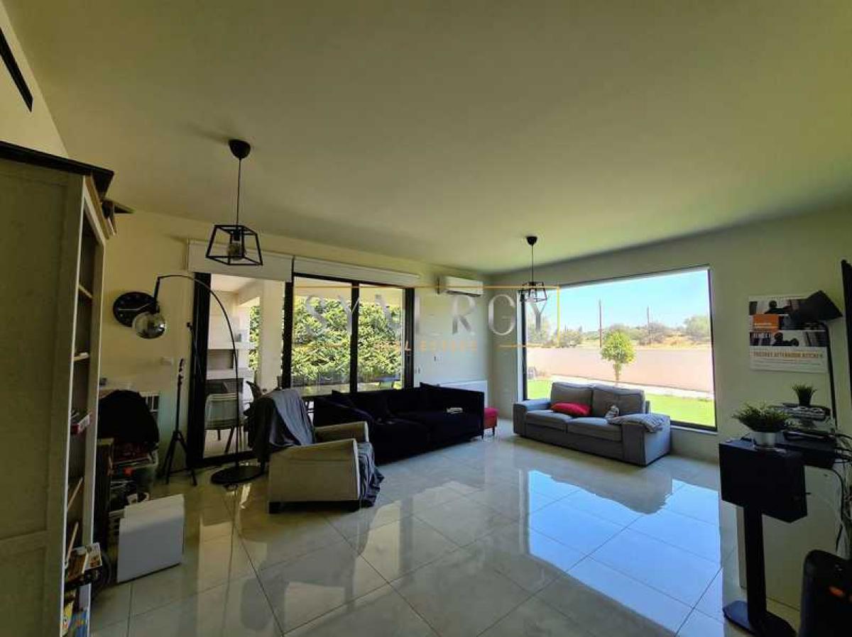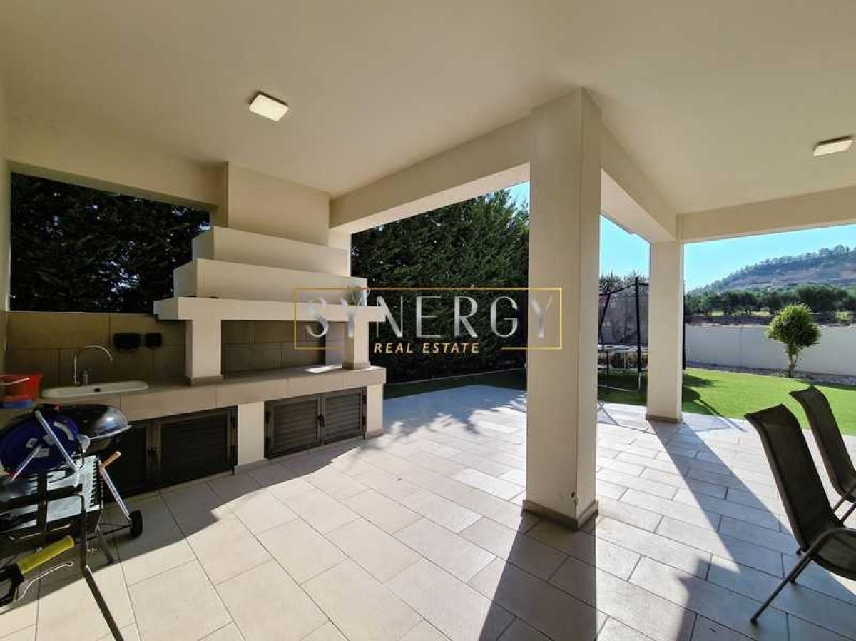 Detached house in Pera, located close to Agiou Mama Church.The house consists of a two living rooms - one with a fireplace, a separate fully equipped kitchen with an island & a dining area, a laundry room and a guest toilet on the ground floor. On the first floor, there are five bedrooms - the main with en-suite facilities & a walk in closet, a family bathroom and a large covered veranda.