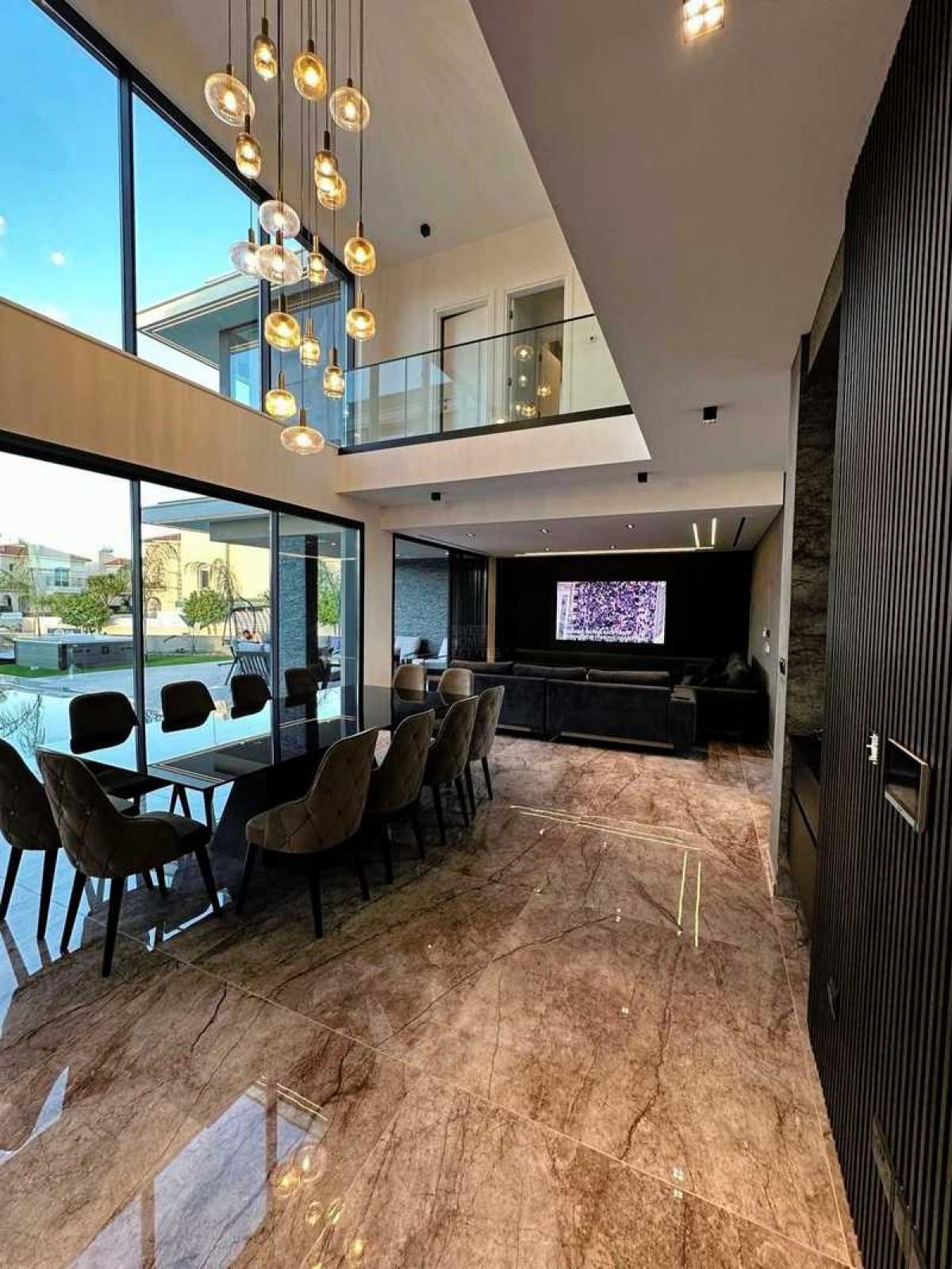 This spectacular brand new villa finishes in the highest standards located in Pernera resort within feet away from all amenities, golden sandy beaches and the world class marina of Protaras.Chic and incredibly stylish, this 5-bedroom suite villa is the perfect full-time residence or an exquisite holiday getaway. Spacious enough for the entire family, this villa is laid out over 2 floors with all modern conveniences one could expect, built in the highest standards. The villa features open living areas, which seamlessly flow into each other and lead directly to the exterior pool terrace providing the ideal indoor-outdoor lifestyle. Beautifully landscaped, the garden is lush and peaceful, and provides plenty of space for sunbathing around the pool with lots of privacy. Perfect for entertaining and socializing, the sleekly designed kitchen opens onto the covered terrace beside the private swimming pool for al fresco dining.