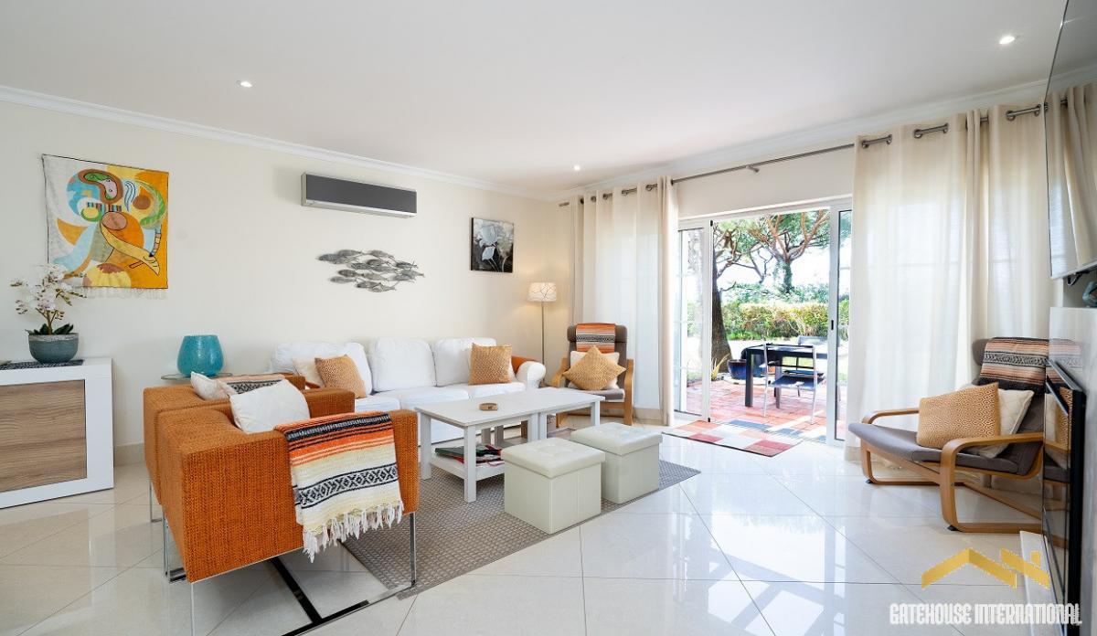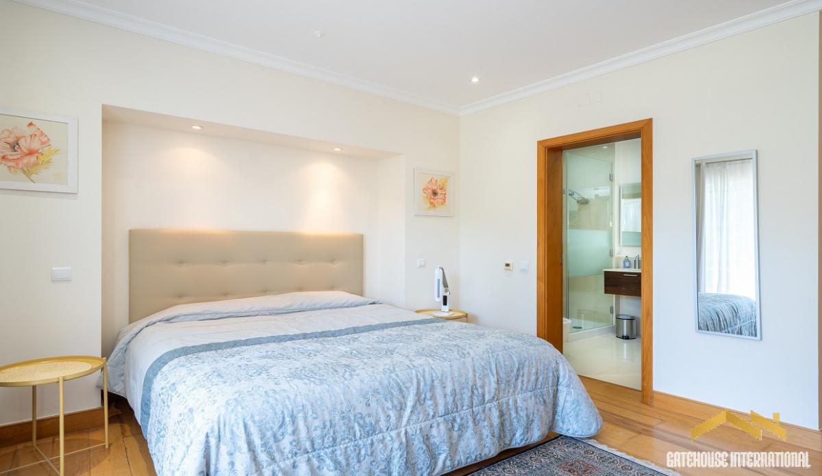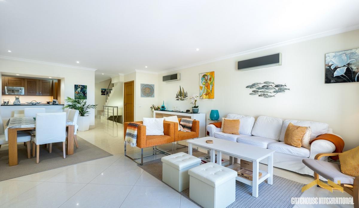 4 Bed Townhouse in Palmyra Vila Sol Golf Resort Algarve - this 3-level townhouse offers 4 bedrooms and 4 bathrooms with double garage parking and overlooks the pool, golf course and distant views to the sea in a secure gated condominium. This townhouse has an entrance, a large living room with a dining area, and a fully equipped kitchen. There are 3 Bedrooms all with en-suite and built in wardrobes. There is also access to the basement level to another bedroom with a bathroom, storage room and double car park space. There are various balcony terraces from the bedrooms, plus a private roof terrace with nice views. The property benefits from air conditioning, under-floor heating and double glazing.in brief: - entrance - lounge and diner - kitchen - 4 bedrooms - 4 bathrooms - double garage - swimming pool