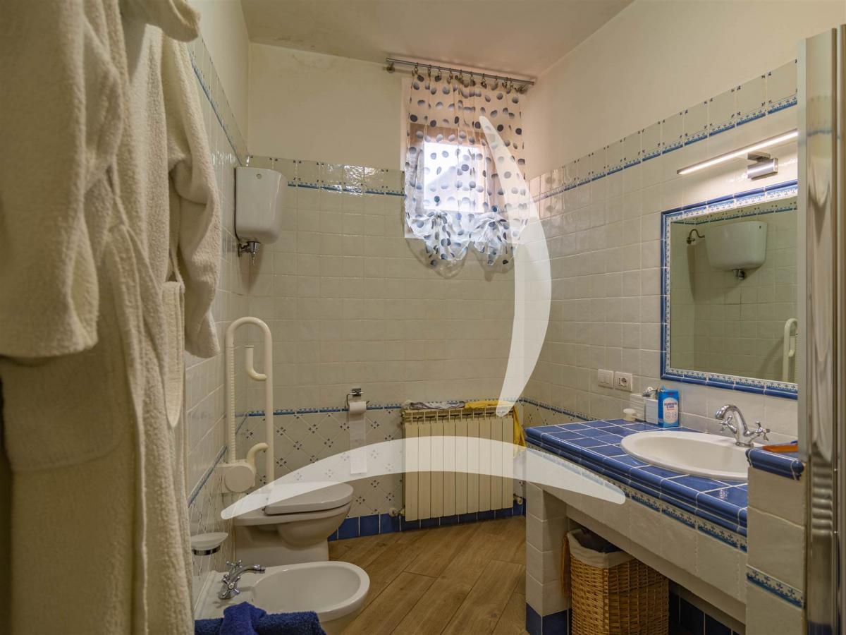 The first floor welcomes you with high-end finishes and abundant natural light. The layout begins with a spacious master bedroom offering stunning panoramic views over the Val d'Orcia. The bright, open-plan living area features large windows that frame picturesque town and countryside vistas. Adjacent is a versatile room that can function as a home office or fitness space. Another generously sized master bedroom overlooks a tranquil courtyard, while the fully equipped eat-in kitchen comes with a handy pantry, laundry room, and a well-ventilated bathroom with a built-in shower. The floor is characterized by elegant wood-effect tile flooring and premium-quality fixtures.