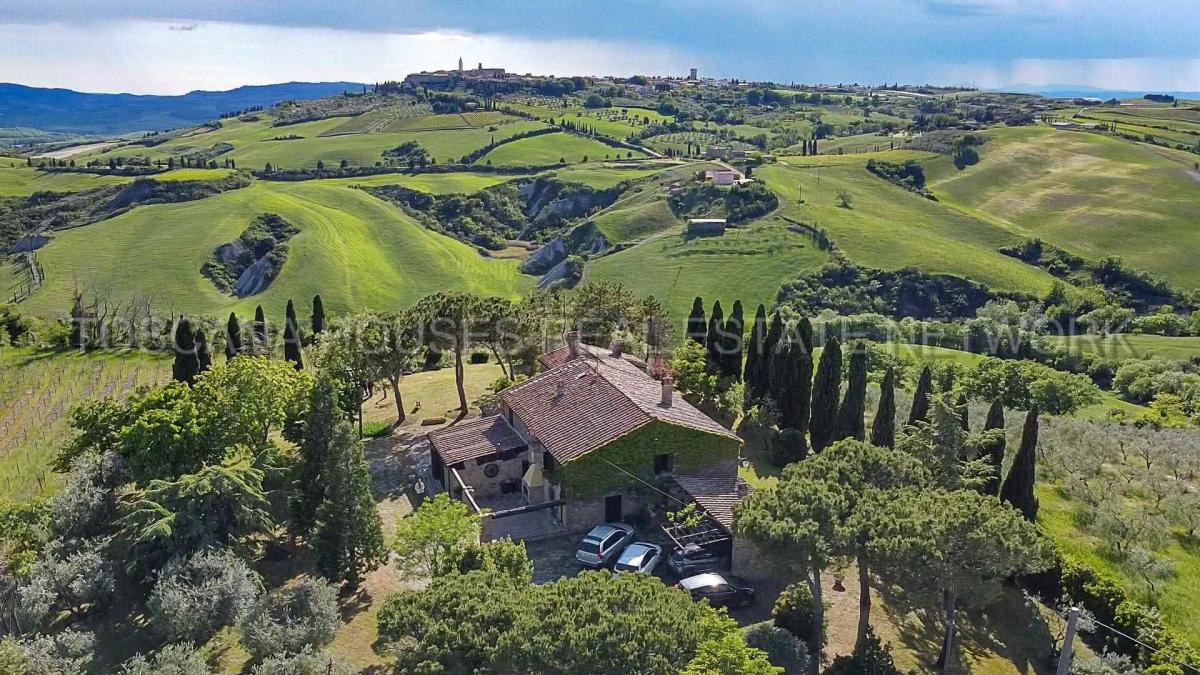 Nestled in the stunning Val d'Orcia, a UNESCO World Heritage site, this charming Tuscan farmhouse is located just steps from the village of Monticchiello and close to the renowned towns of Pienza, San Quirico d'Orcia, and Montepulciano. Only 40 km from Siena, the property enjoys a dominant position with breathtaking panoramic views of the surrounding countryside.