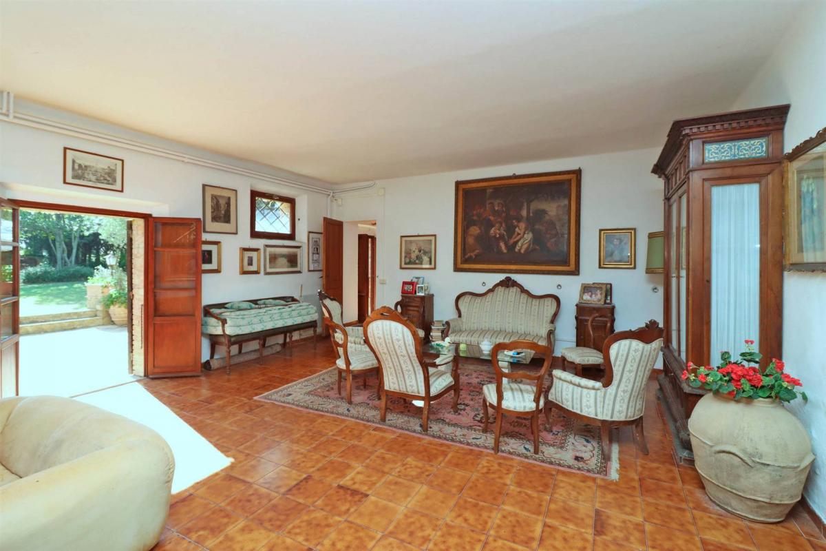 On the ground floor, the main farmhouse features a double living room, a kitchen, a dining room, a utility room, and a bathroom. The first floor, accessible from both inside and an external staircase, includes four bedrooms, a living room with a fireplace, and a bathroom. The annex, with a net floor area of 32 sq.m, and the small chapel of 80 sq.m add additional value and flexibility to the property.