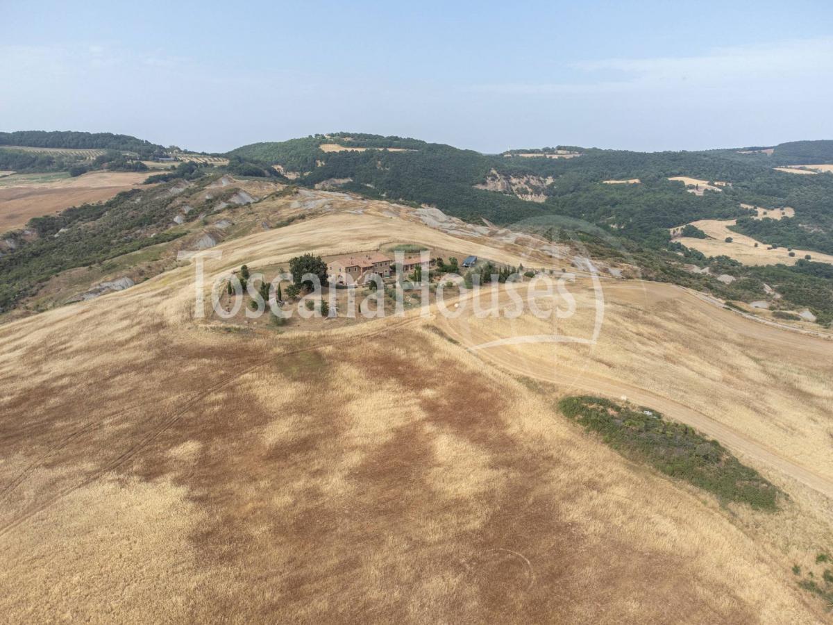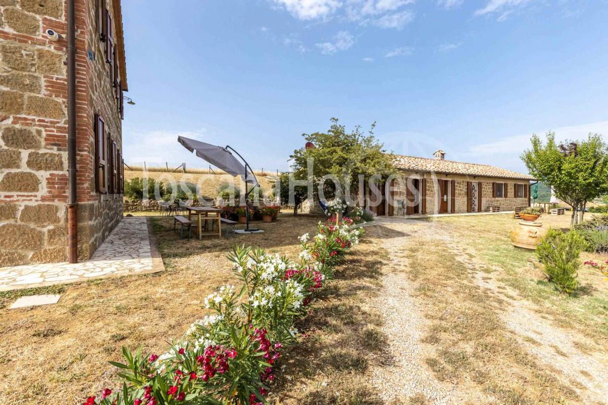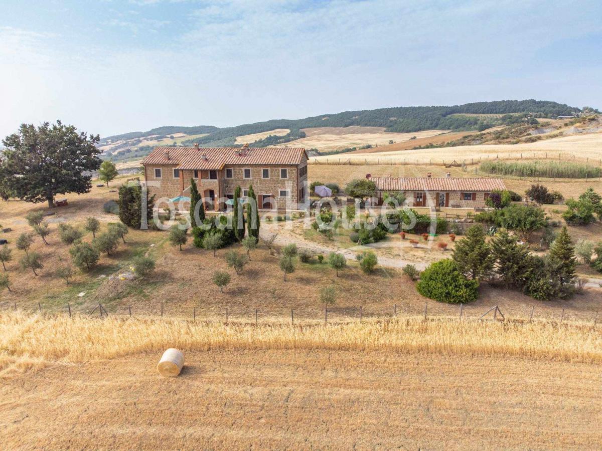 Perched atop one of Tuscany's most sought-after hills, this stunning property in Pienza boasts breathtaking panoramic views of the Val d'Orcia. The farmhouse, dating back to 1900 and renovated in 2006, is in excellent condition and surrounded by 5 hectares of land, including an 8000 sqm park adorned with lavender plants and a gazebo.
