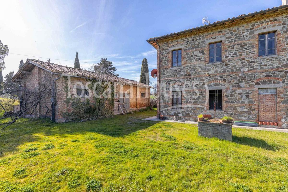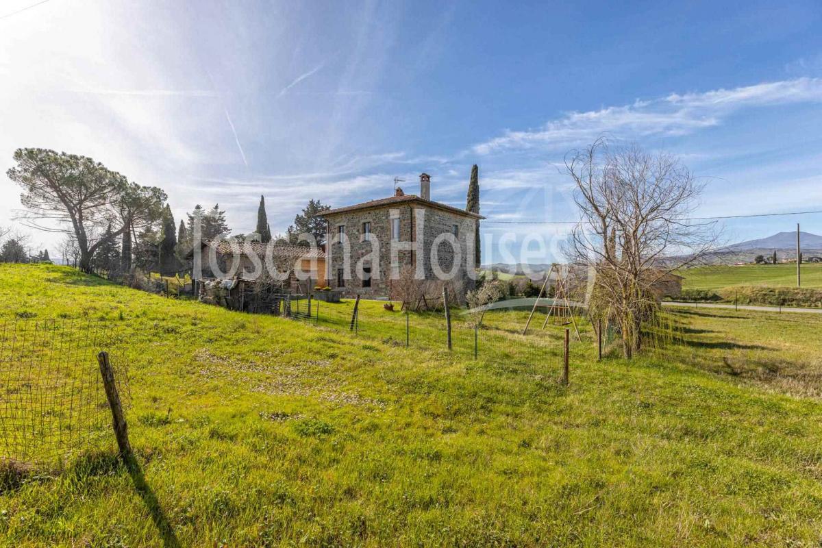This magnificent Tuscan farmhouse is located in the stunning Val d'Orcia, one of Tuscany's most charming regions, designated a UNESCO World Heritage site. The property, originally a school with teacher residences, is ideal for transforming into a vacation home or luxury accommodation. Surrounded by a beautiful garden and sitting on about 1 hectare of land, the property offers a total area of 428 sqm, including the main house, various annexes, and agricultural land.