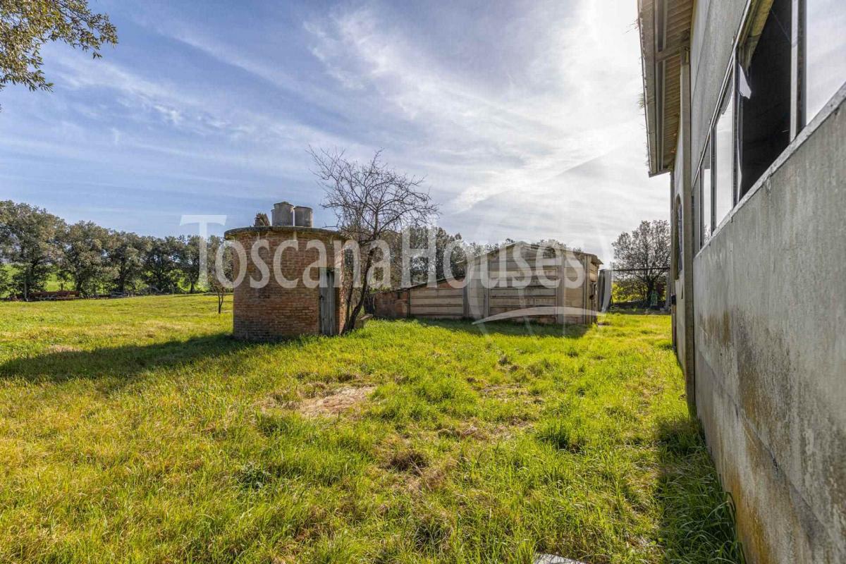Located near the main house, the property includes various annexes, including the "Casa della Maestra," a 60 sqm building that once served as the teachers' residence and could be converted into a charming cottage with two bedrooms. Additionally, there is a 120 sqm warehouse and a 60 sqm shed with a cellar.