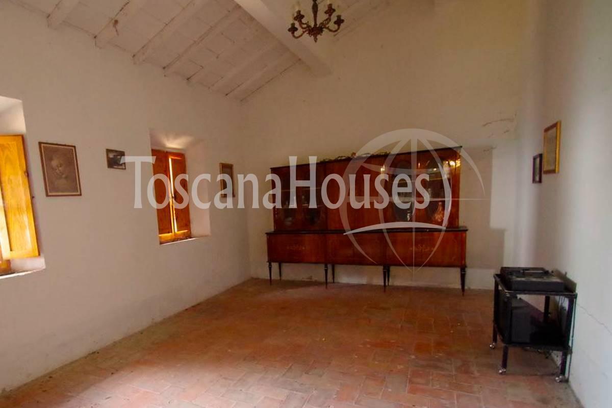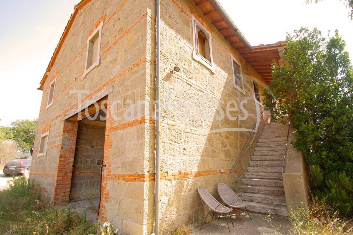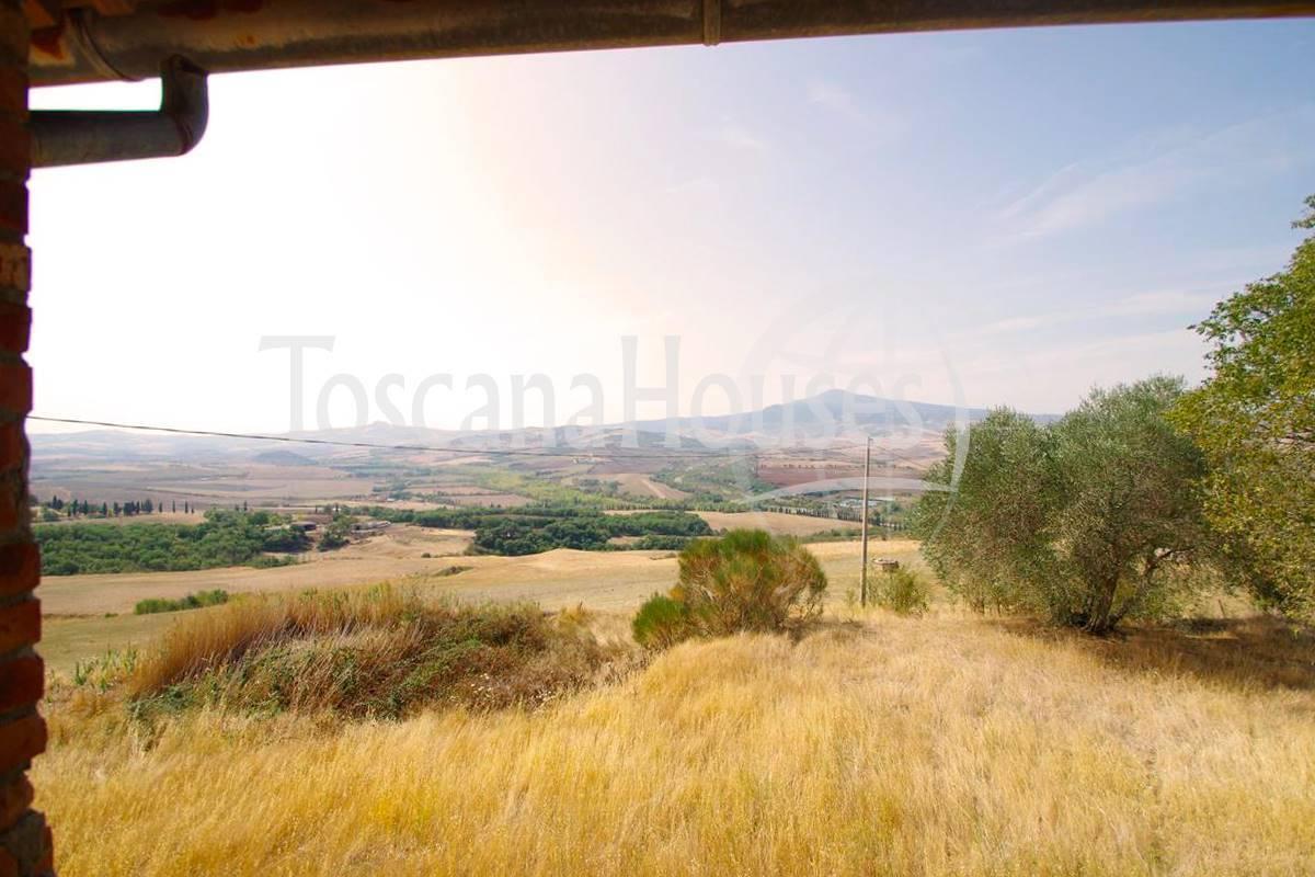 Nestled a short distance from the charming village of Pienza, this historic farmhouse offers a unique opportunity to create a dream home or start a tourism business in one of Tuscany's most sought-after areas. Located in the heart of the Val d'Orcia, the property retains its original rustic charm with exposed beams and terracotta floors, while the surrounding one-hectare plot allows for extensive customization and development.