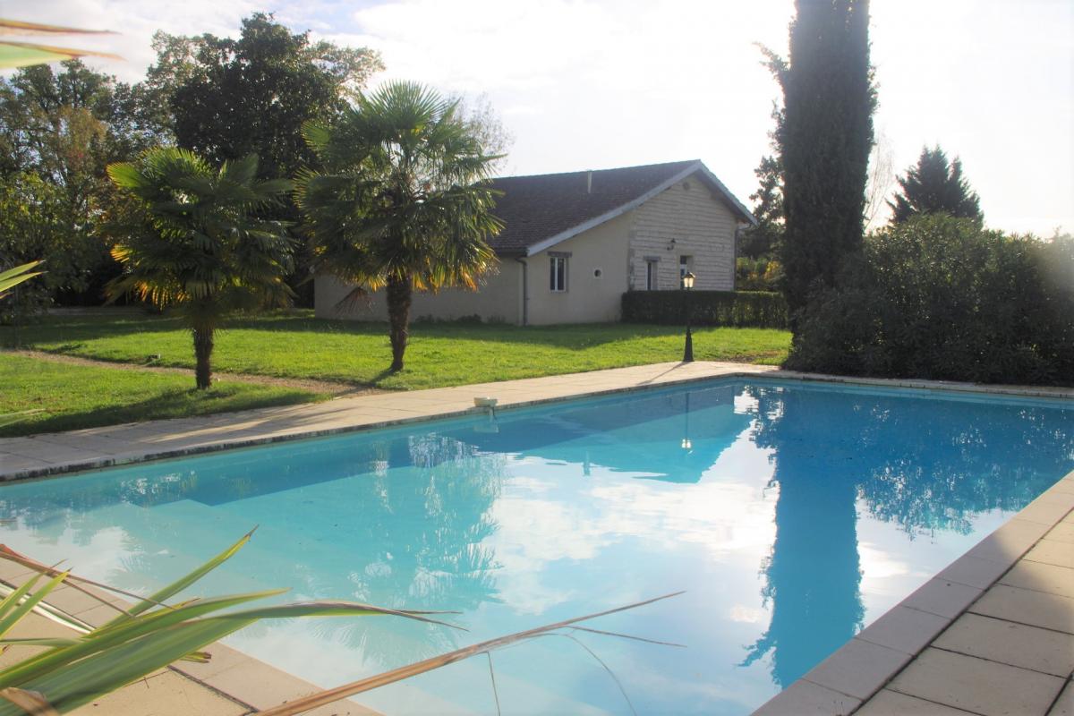 Chateau built at the end of the XiXth century set in a landscaped "French style" park on the Dordogne riverside. This property includes a stone and "bricous" outbuilding, a guest house or "gite" and a garage. This natural setting, in combination with the Dordogne river and the swimming-pool will guarantee to keep you cool and fresh at the height of summer.