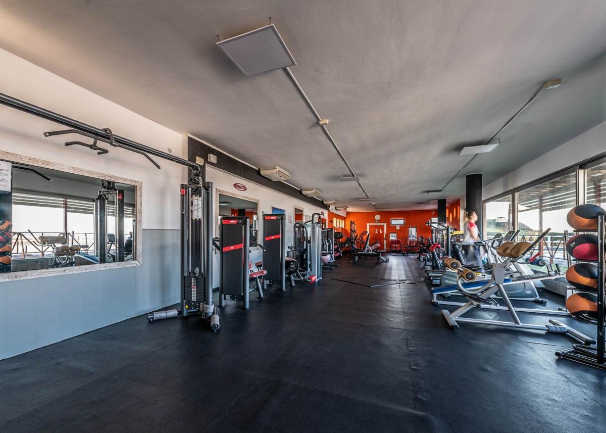 Fully equipped gym with changing rooms and large retractable windows