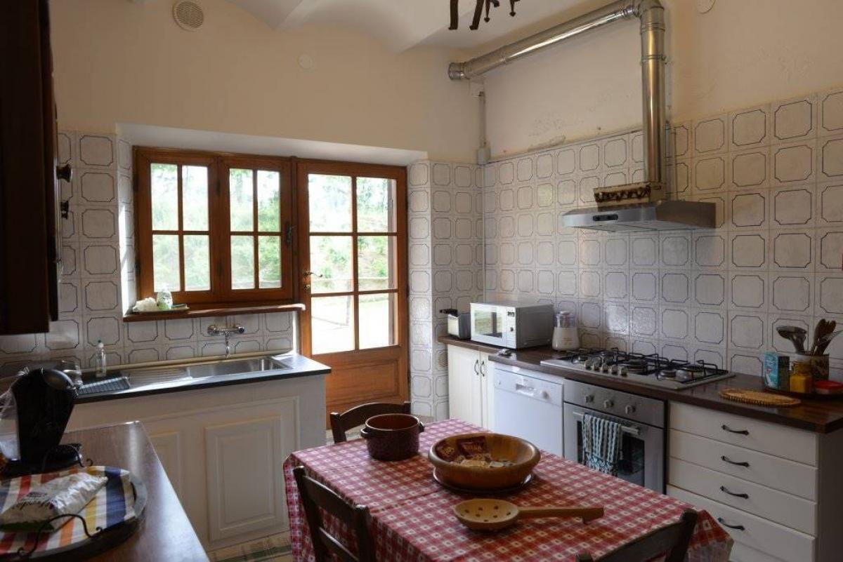 The main residence, originally used as a hunting lodge, is spread over two floors, totaling about 360 sq.m. The ground floor offers spacious living areas with bright, large salons, while the first floor includes five bedrooms and two bathrooms. Adjacent to the main house is another apartment featuring living and dining areas, a kitchen, storage rooms, and four bedrooms with a bathroom on the upper floor. Restored in 1971, the house has a GPL heating system and great potential for development into a hospitality venture, such as a B&B or a restaurant.