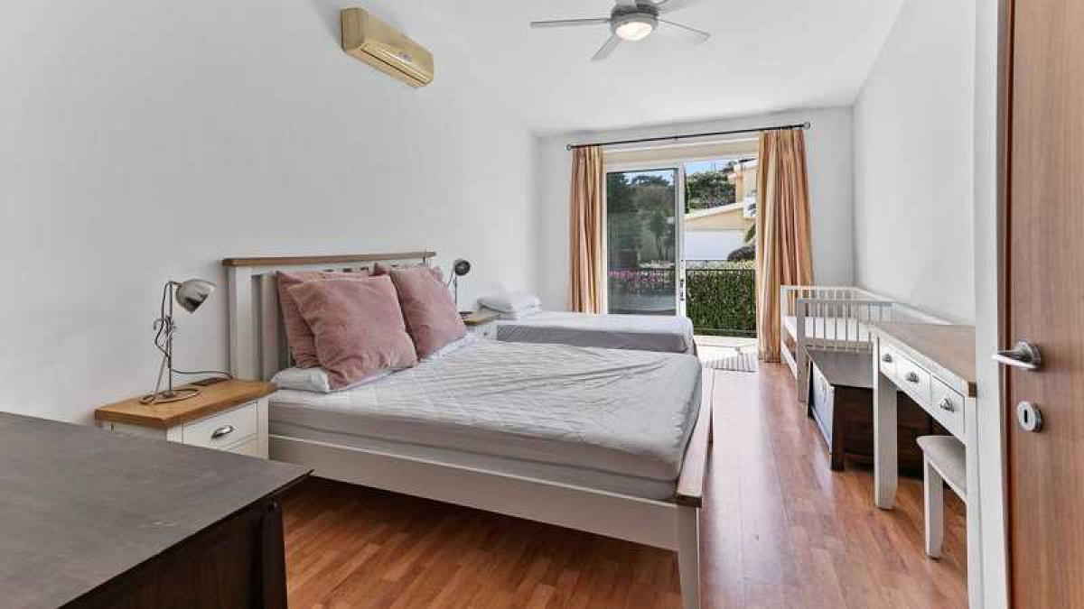 Step outside to discover meticulously landscaped gardens surrounding the property, adorned with a variety of trees and shrubs. The pool terrace invites you to soak up the Mediterranean sun, while a spacious open-air dining terrace nestled under the trees offers an enchanting setting for al fresco meals. A sweeping drive on the right side of the property leads to a large covered parking area, ensuring convenience and security for your vehicles.