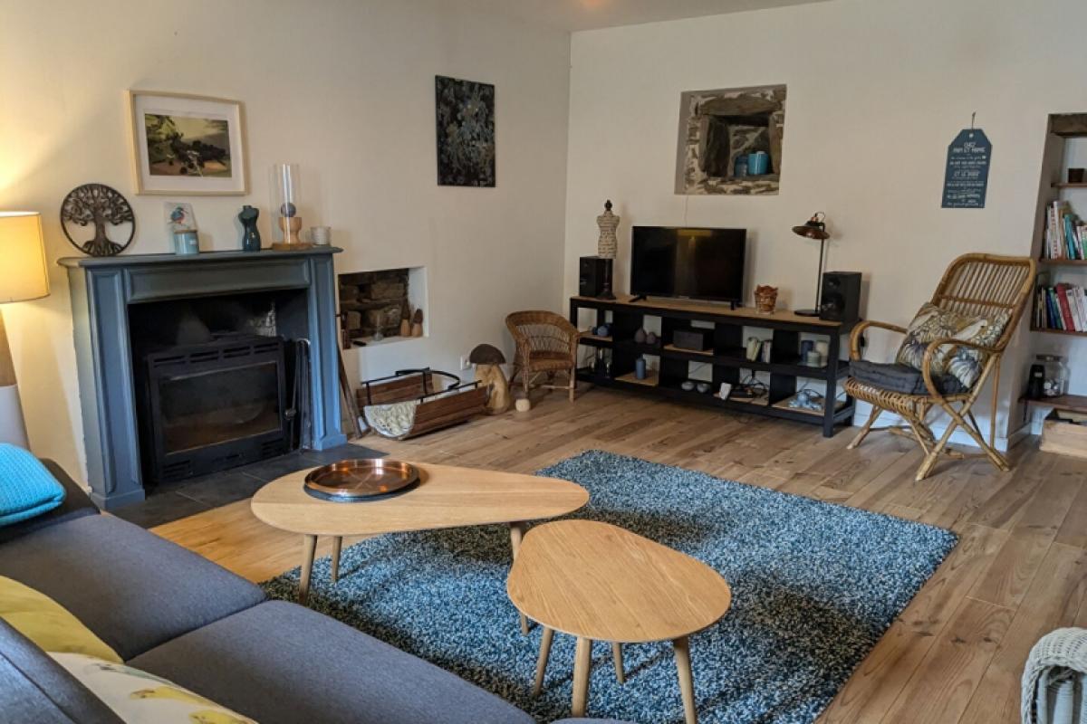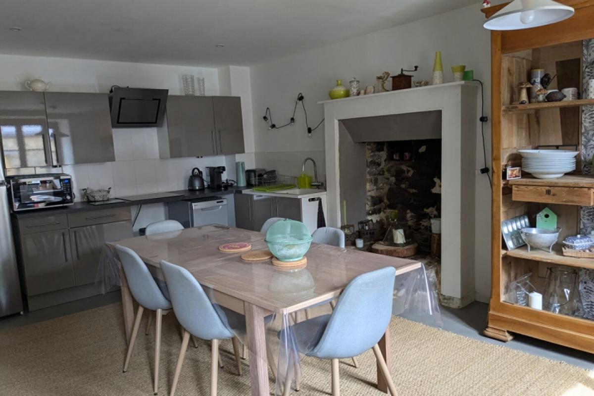 Charming detached country house for sale, renovated with great authenticity, comprising:- Ground floor: a dining room with a kitchen area, a living room with an insert, a shower room and WC, a laundry room, a workshop.