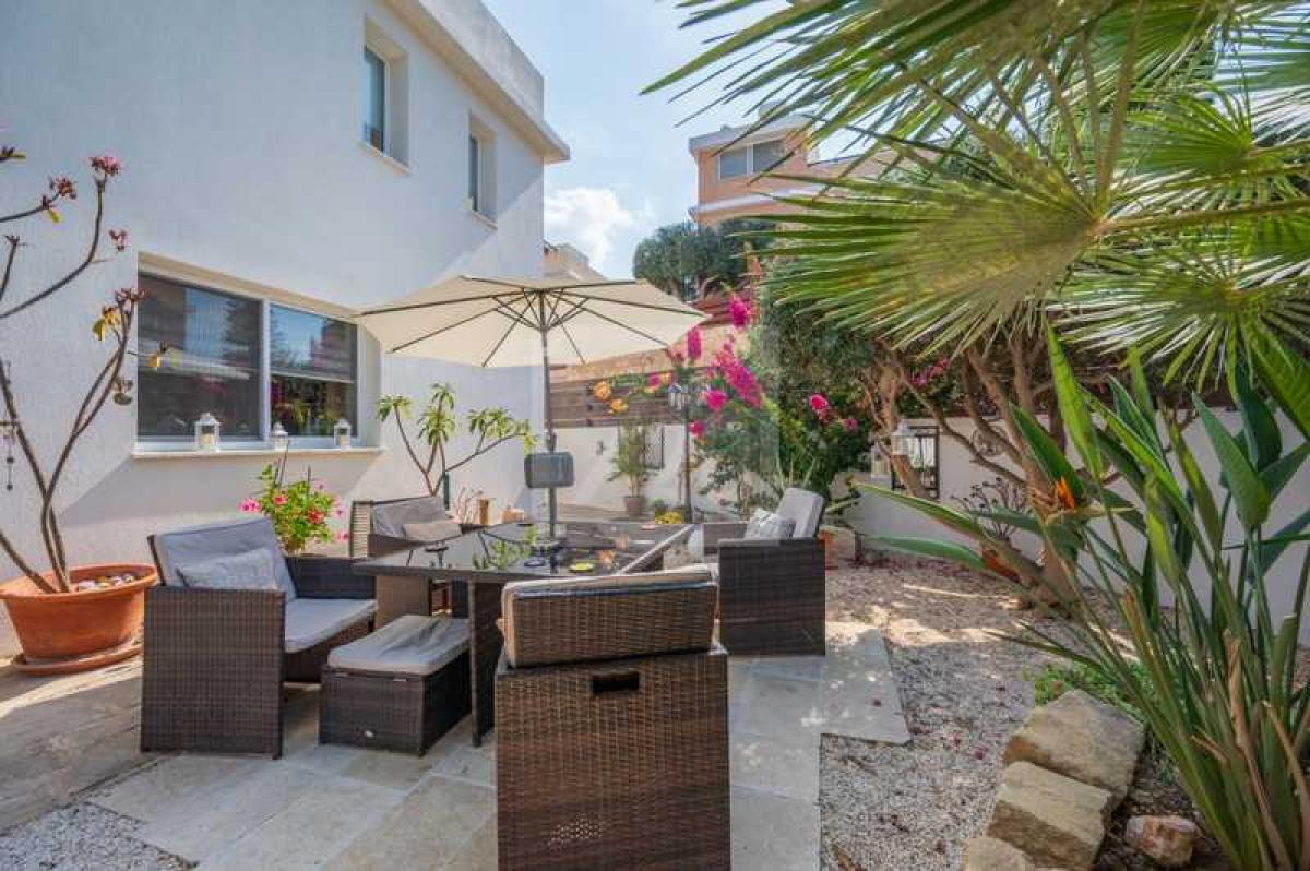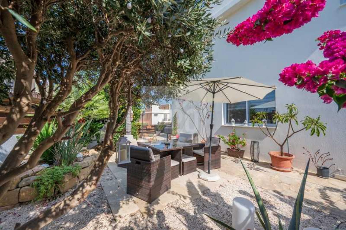 The garden is mainly to the side of the property with a large patio area bordered by shrubs, plants and a orange tree. It is the perfect spot for alfresco dining with BBQ area.