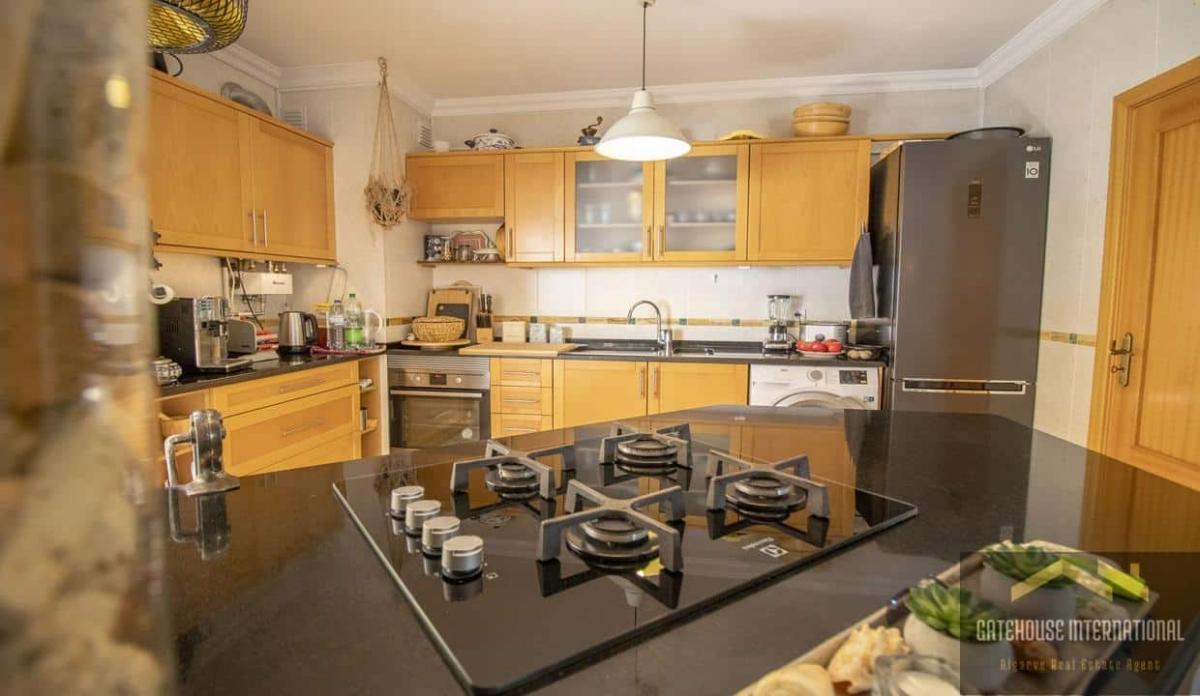 The property is laid out over two levels and includes a bright entrance hall, spacious living room with a cosy fireplace, dining area, and an open plan kitchen fitted with modern appliances and an island. The bedrooms are generously sized, with the primary bedroom offering an en-suite bathroom and access to a private balcony. Outdoors, enjoy relaxing or entertaining in the garden or on the BBQ terrace with beautiful Algarve sunsets as your backdrop.
