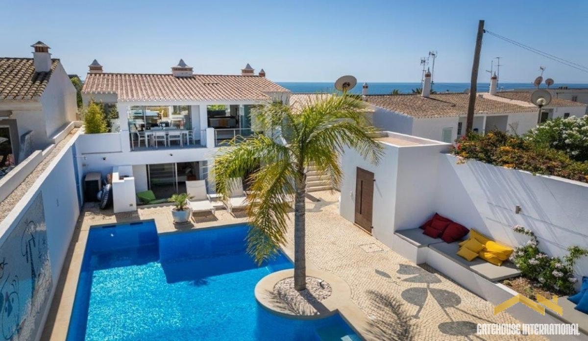 6 Bed Beach House in Praia da Luz Algarve - A 260m2 linked property with 6 bedrooms and 6 bathrooms, a swimming pool and located on the beach front, fully renovated, combining two beach houses into a single property. The house features a living room with a fireplace, dining area, an open plan fully fitted and equipped kitchen, a sitting room with a fireplace, six bedrooms and 6 bathrooms. Outside is a heated swimming pool, terraces, BBQ and Al fresco dining areas. in brief: - living room with - dining area - fitted kitchen - sitting room - 6 bedrooms - 6 bathrooms - swimming pool - terrace Praia da Luz is situated in a very cosmopolitan summer holiday resort that used to be a major fishing town, especially from the 13th to the 16th century. To the east stands the limestone and marl cliff, deeply gouged by running water. This whitish cliff is marked by a very dark rock formation that stands out against the landscape: it is the so-called Black Rock, a volcanic vein that extends from the Monchique Mountains to the sea. Praia da Luz is situated close to Luz centre with all amenities and the Faro international Airport is located within a 1h driving distance.