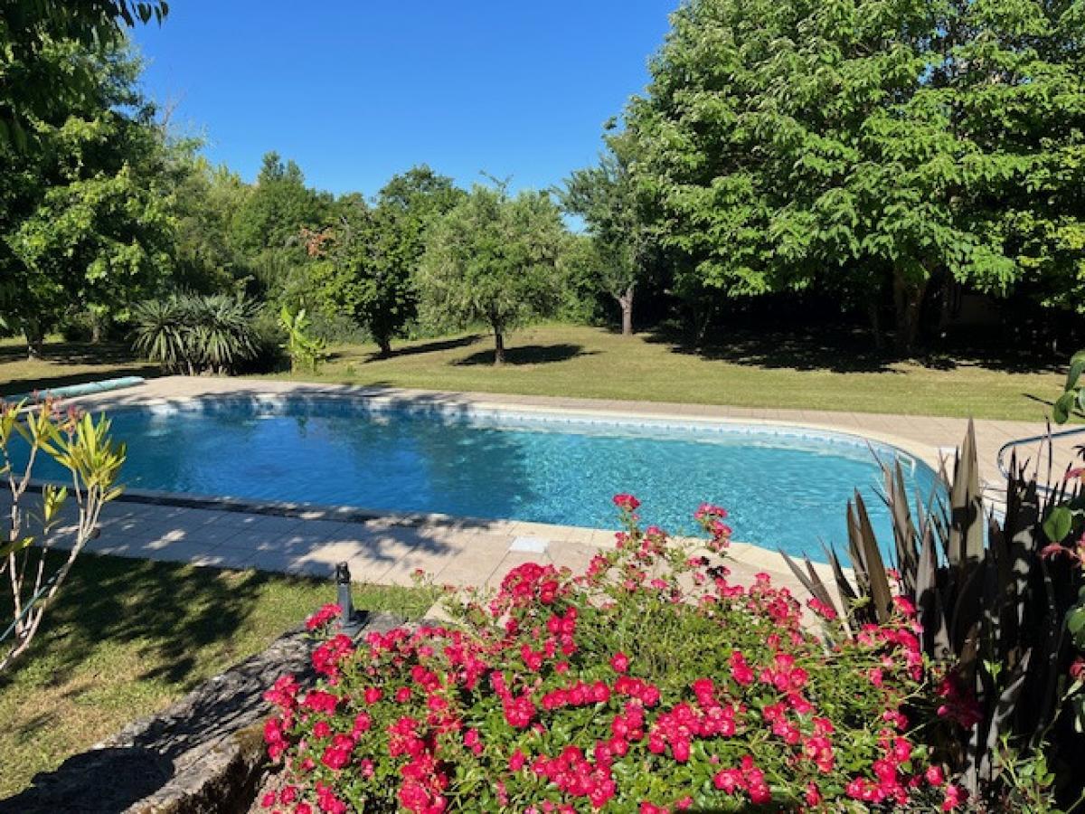 Nestled in ideal location close to two small towns and just 10 minutes from Bergerac town. House of approximately 177m2 surrounded by the 3750m2 enclosed garden with a 10m x 5m swimming pool. Filled with natural light, the living room of 45m2 looks out on to garden and pool area, a separate kitchen, a conservatory with summer kitchen, two bedrooms and a shower-room on the ground floor.Upstairs are two large bedrooms of 29m2 and 13,5m2 and a bathroom.