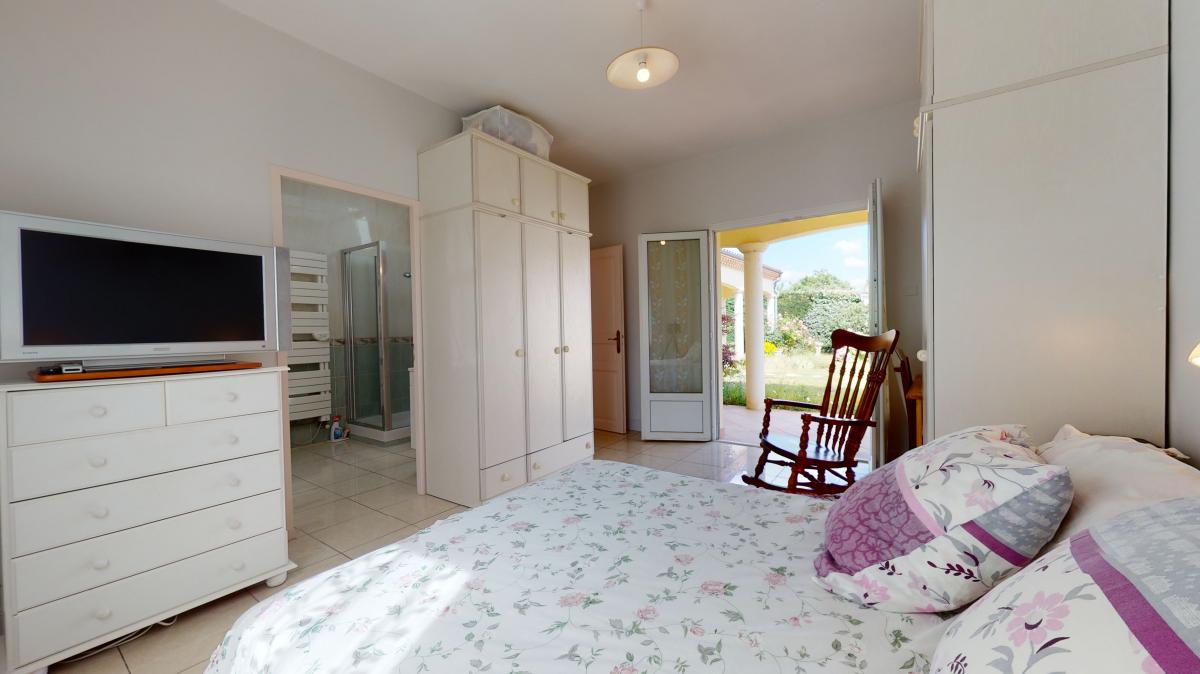 Located on the outskirts of a dynamic village near Bergerac, this 160m2 recently built single storey four bedroom house offers simple and careless living: entrance, 43m2 living area, open plan kitchen, utility room, four bedrooms (two with ensuite shower room, one with bathroom and toilet, separate toilet and 20m2 basement. Easy access to a covered terrasse leading to the garden. The 8m x 3,50m heated swimming pool is built inside a 75m2 verandah including a shower, with access to a 14m2 "changing room" with toilet and space for a spa.