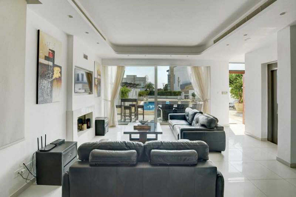 This stunning 5-bedroom luxury villa is part of a modern complex in the prime location of Protaras, just steps away from the sandy beach. Offering an idyllic setting for both permanent living and holiday rentals, it is conveniently close to the center of Protaras, where all amenities such as shops, bars, restaurants, and supermarkets are within walking distance. Located in a gated project, the villa ensures safety, privacy, and tranquility for its residents.On the ground floor, this contemporary villa features one bedroom, a fully equipped kitchen, and open-plan living and dining areas that seamlessly extend into the outdoor spaces. The second floor houses three bedrooms, each with its own ensuite bathroom. The villa also boasts a spacious roof garden, perfect for enjoying beautiful, unobstructed sea views. The outdoor terrace includes a comfortable sitting area for al fresco dining and an infinity swimming pool for ultimate relaxation.