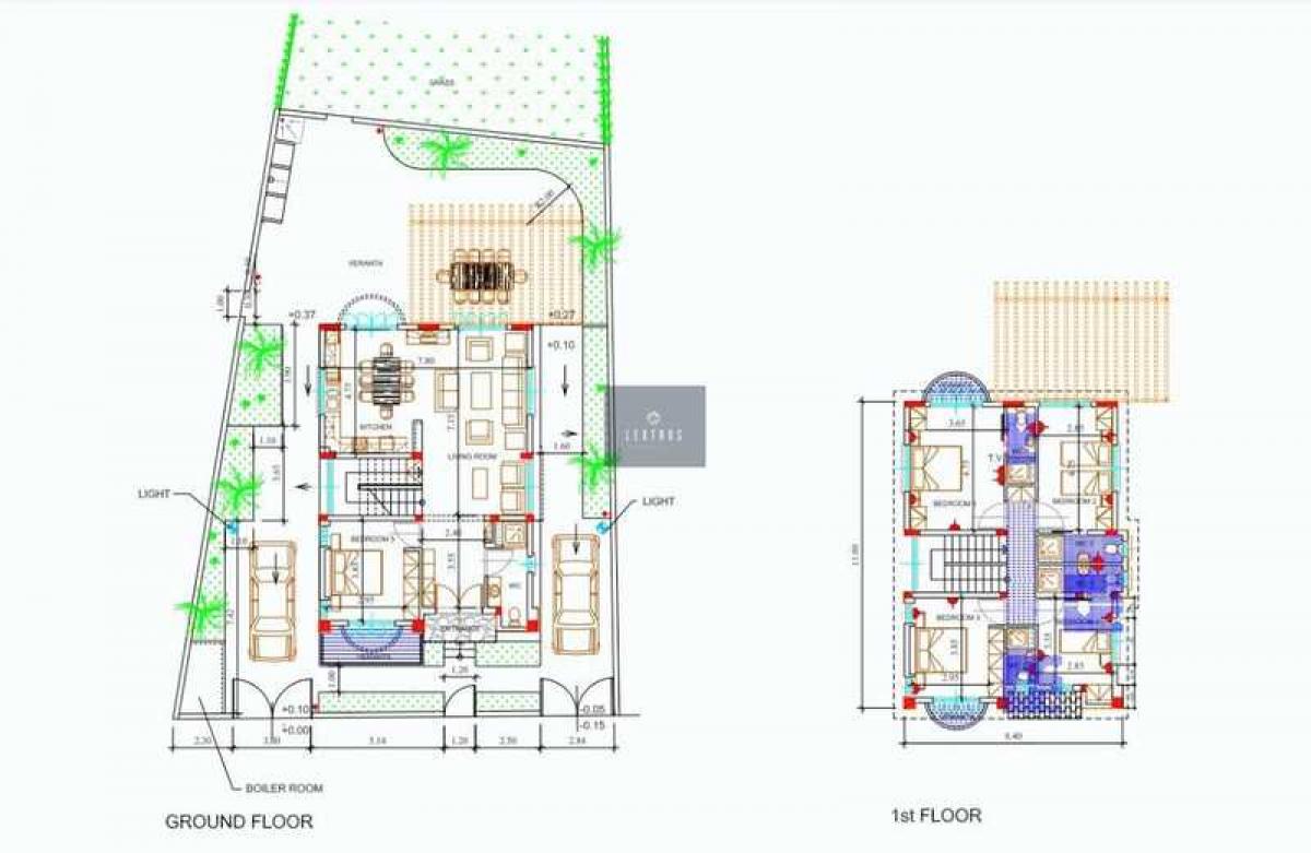 The spacious interior covered with earthy colours has a modern open concept feel and comprises of a hall, a large living area and five bedrooms of which four located on the first floor have their own en-suite toilets with shower rooms.