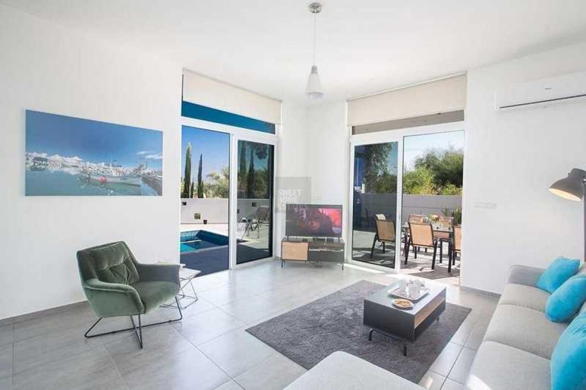 This spacious detached villa is set in a private location just 5 minutes walk to the nearest beach and within easy reach of all of the resort amenities.This family villa with plenty of natural light throughout boast an open plan fully equipped kitchen, living/dining area that leads directly onto the outside pool terrace. Villa features 3-spacious bedrooms with built in wardrobes on the ground floor. Master bedroom enjoys an ensuite and the other 2-bedrooms sharing one good size of family bathroom.