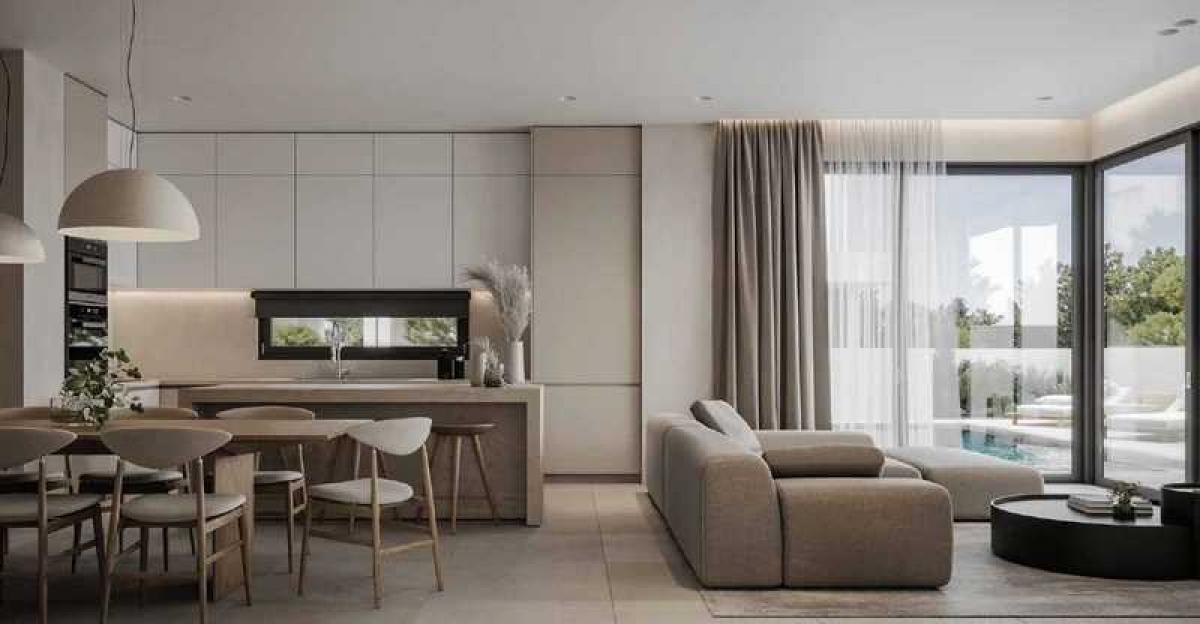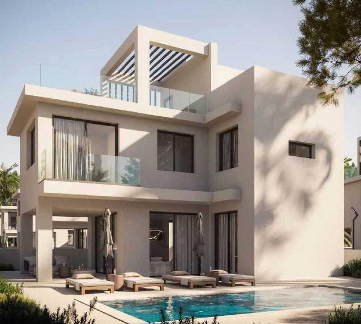 Reference ID: #SA33493Price details: €542,000 +VATProject situated in the cosmopolitan seaside resort of Protaras, renowned for its award-winning beaches ranking among the best in Europe.Positioned in the popular and rapidly developing area of Pernera, and near the new Paralimni Marina.Comprising 18 opulent villaS, presents an excellent opportunity for both investment and home ownership.The residences boast clean, minimal geometric lines, showcasing a distinctive design and elevated aesthetics evident in the natural tones of both interiors and exteriors.Each villa features a private swimming pool, garden, and a roof garden with captivating sea views.The ground-floor covered terraces seamlessly merge indoor and outdoor spaces, establishing an inviting environ ment to enjoy the Mediterranean climate of Cyprus all year round.Covered area: 153 sq.m.Covered veranda: 19 sq.m.Roof garden: 34 sq.m.Plot size: 305-397 sq.m.Delivery date: Sep 2026Prices: €542,000-€578,000PLUS V.A.TReference number: SA33493