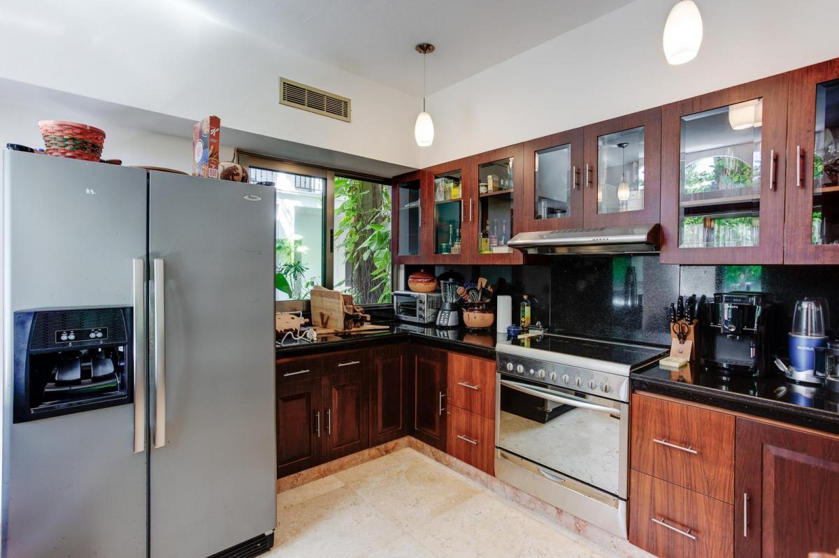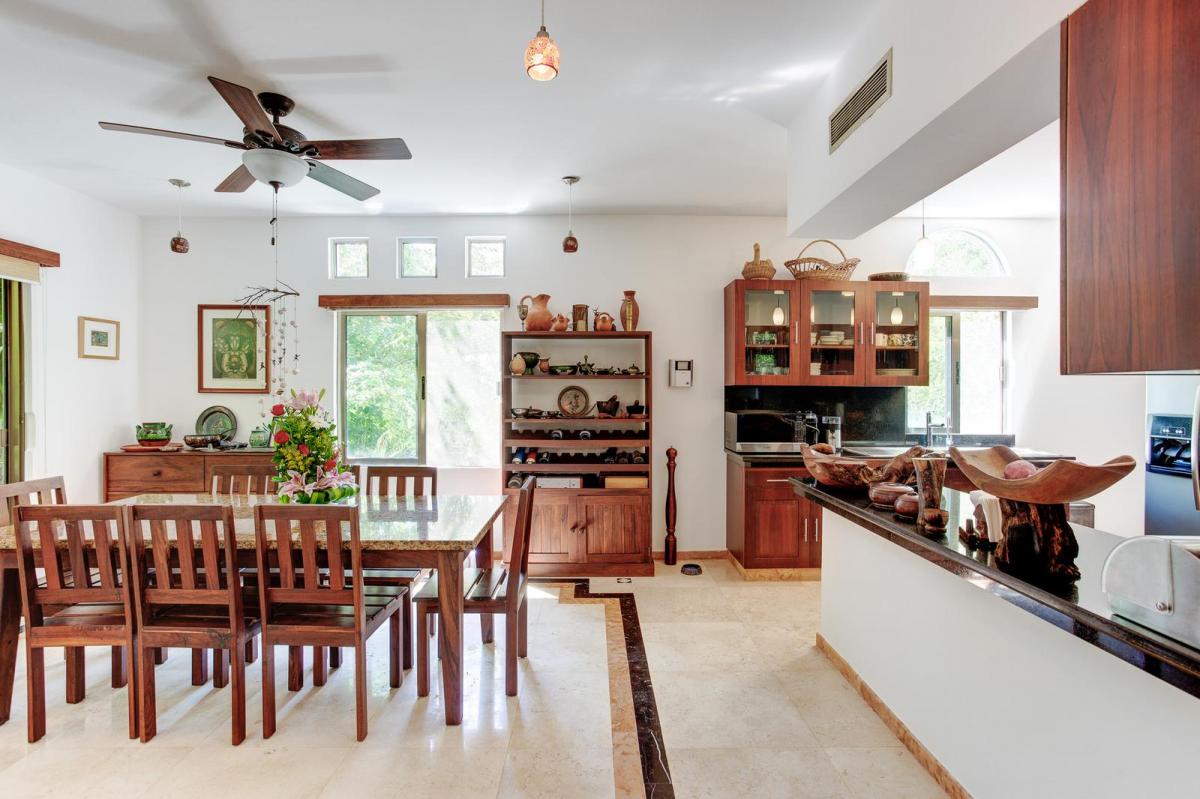 Imagine a lifestyle where luxury is measured in impeccable details and tranquility is an everyday asset. Upon entering this residence, you are welcomed by the warmth of cream ivory Spanish marble floors and the nobility of tsalam wood, framing exceptionally generous spaces. Four main suites, each with a private pergola-covered terrace, offer peaceful retreats with luxurious bathrooms. The spacious living and dining rooms flow onto a terrace with water views, ideal for entertainment. The kitchen, a jewel with black San Gabriel granite countertops and artisanal cabinetry, is the heart of this home. The outdoors is a private oasis with a pool, grill area, and gardens, designed to enjoy the perfect Riviera Maya climate in complete privacy.