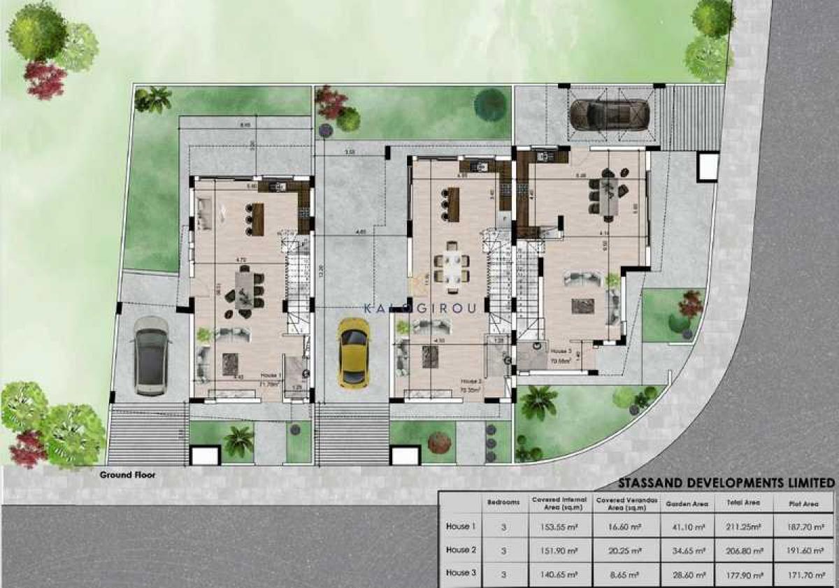 This project boasts 3 houses, 1 detached and 2 semi-detached. All houes have an open plan layout with guest wc on the ground floor and the first floor boasting three comfortable sized bedrooms one of which is en-suite. Storage areas are also available, covered parking and ample garden space.