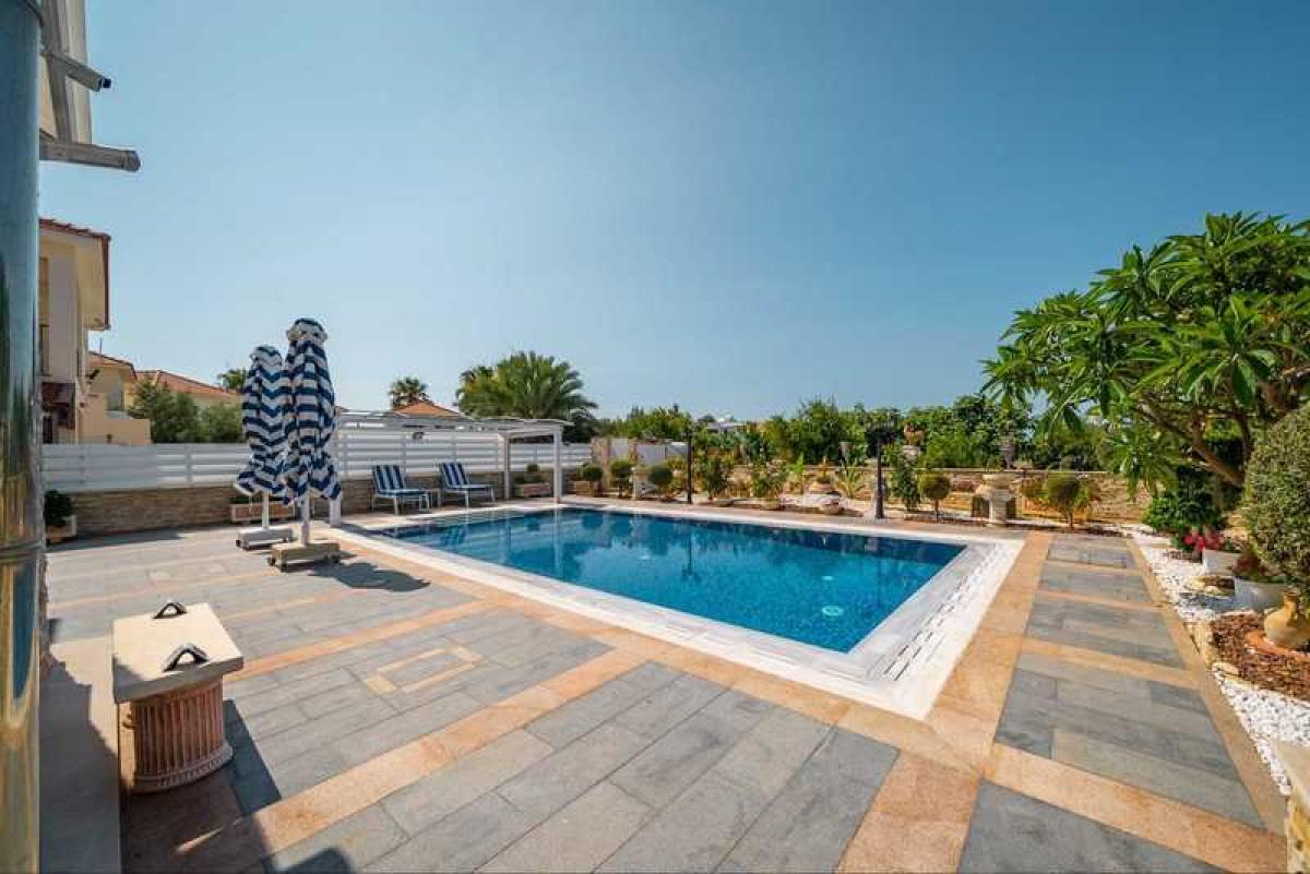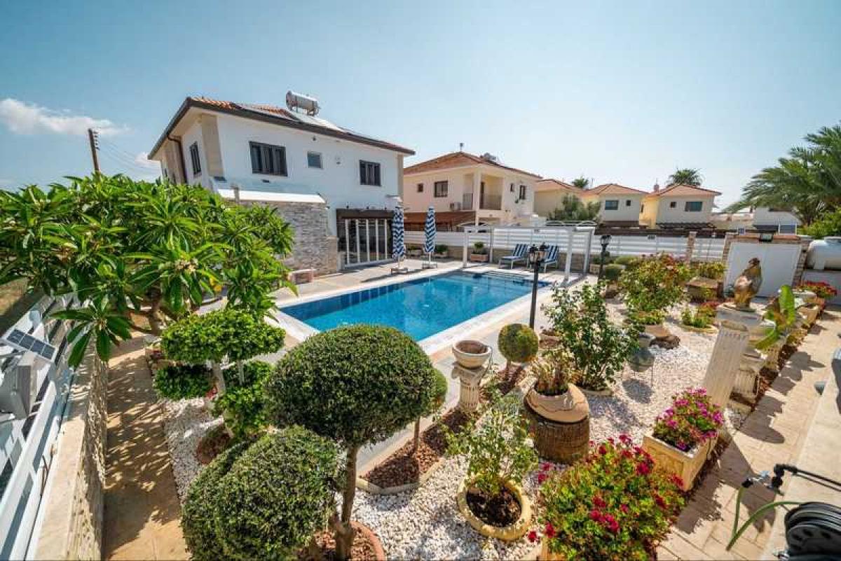 Reference ID: #SA31471Price details: €700,000A very cozy, well-built and thought-out to the smallest detail two-storey house in Pyla area, in Larnaka. It is situated in a convenient, quiet residential neighborhood, within easy proximity to all amenities, only 4-5 minutes' drive from the sea.3-bedrooms + office room, which can also be used as another bedroom2 bathrooms + 1 guest w/cThe house has an internal area: 170 sq.mCovered verandas: 20 sq.mPlot size: 471 sq.mParking for 4 carsThe house is fully furnished and equipped [included in the price]Air conditioning in each roomUnder floor heating system [diesel]Big swimming pool [size: 11 x 5m] with sunbed and BBQ areaPhotovoltaic panels [6 kW]Strong security system with many CCTV cameras around the houseBeautiful, well-kept garden with flowers and fruit treesThe house was built in 2008 and fully renovated in 2020.This is a resale property, so there is no VAT.Reference number: SA31471