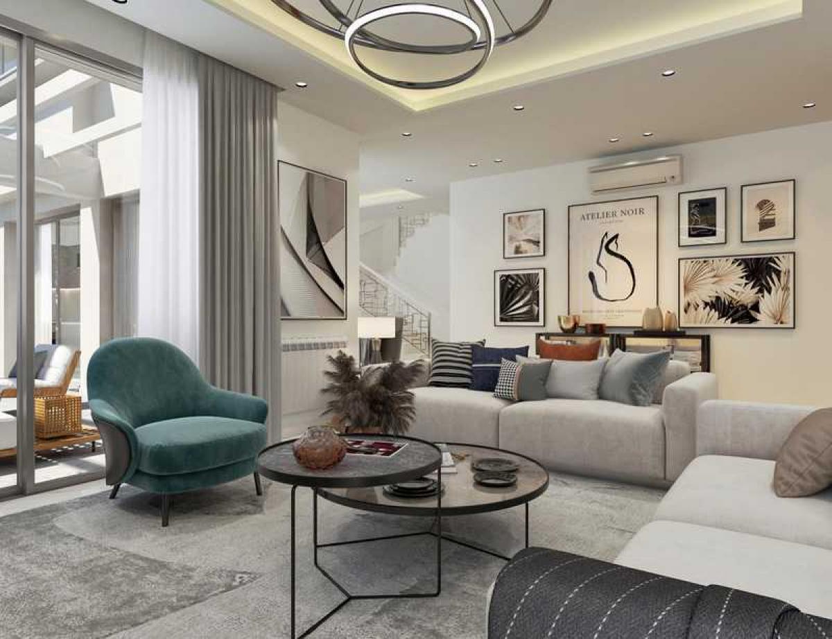 Inside, the spacious interiors invite homeowners to express their personal style. The open-plan ground floor is bathed in natural light, with large sliding doors that seamlessly blend the indoor living spaces with the sun terrace, creating a harmonious flow between indoor and outdoor living.