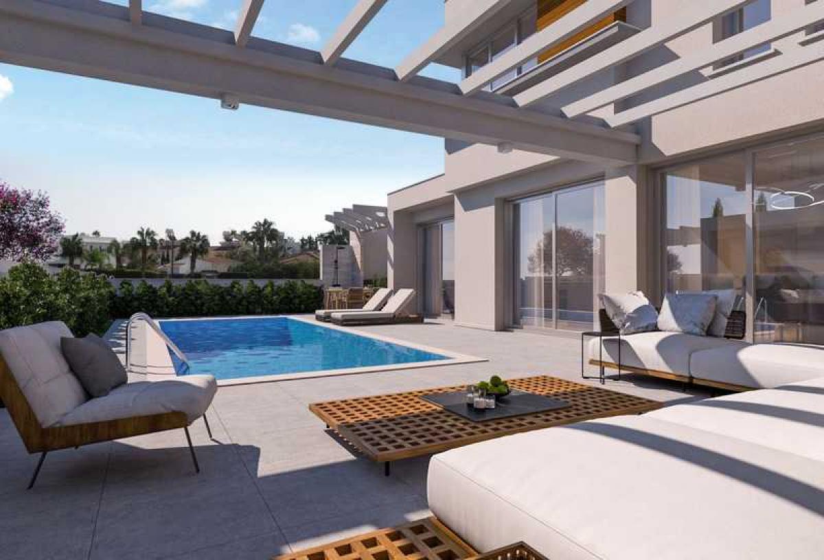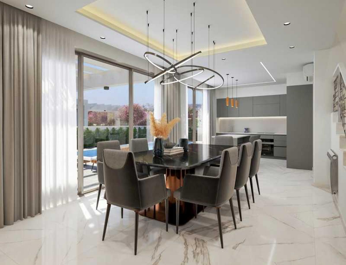 These luxurious villas are nestled in a rapidly developing area of Pyla, just a short drive away from the sea and vibrant heart of Larnaca. Surrounded by newly built residences, these properties provide a serene and secure retreat, while remaining within easy reach of charming cafes, diverse restaurants, and a plethora of leisure and entertainment options.Each villa is a masterpiece of modern architecture, featuring high-quality finishes that elevate both the interior and exterior. The striking facades are enhanced with natural stone accents and hardwood highlights, offering a sophisticated and timeless aesthetic. The private gardens are designed for ultimate relaxation, complete with an optional swimming pool, sun deck, and an outdoor dining area. In addition, each villa offers two covered parking spaces.