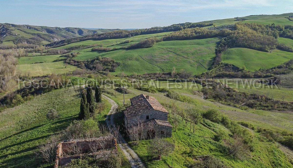 Currently, the farmhouse is slated for a complete renovation, with an approved project that includes the creation of 250 sqm of underground spaces and a 70 sqm pool. The plot of land, which is about one hectare, offers ample space for gardens and cultivation, and there is the possibility to purchase surrounding land to further expand the property.