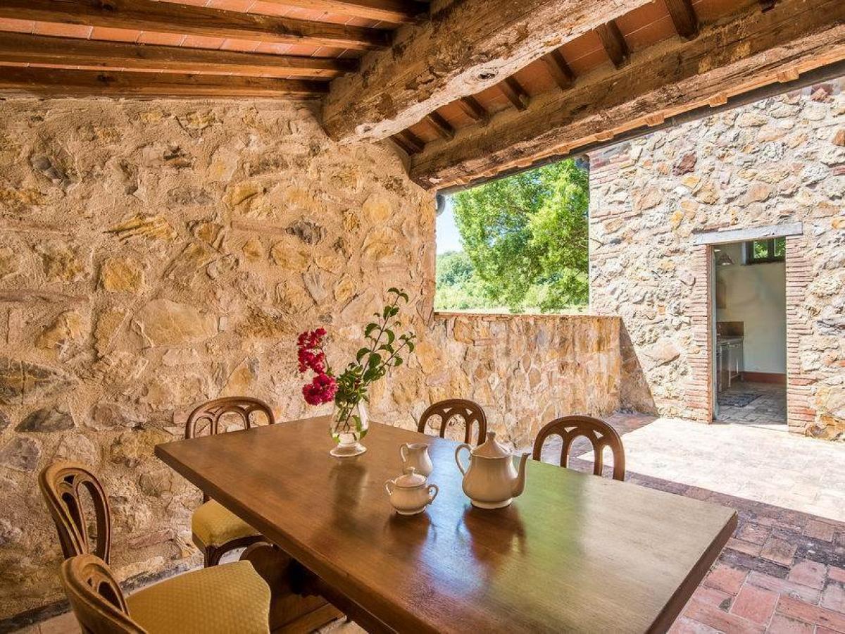 This charming country farmhouse, nestled in the lush countryside of Siena, is a perfect example of a Tuscan rural property restored with meticulous attention to traditional architectural details. The restoration, completed in the early 2000s, involved the careful selection of authentic materials, ensuring the property retains its rustic character and timeless appeal.