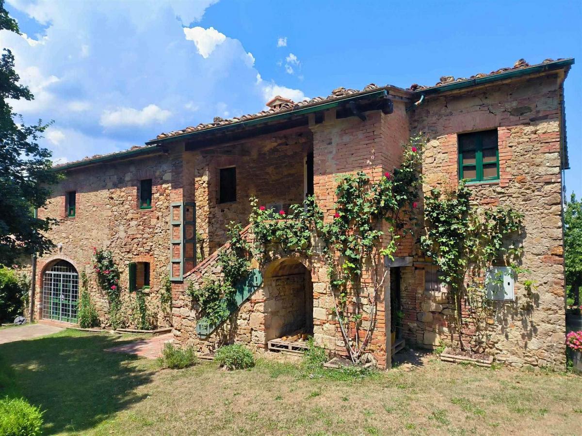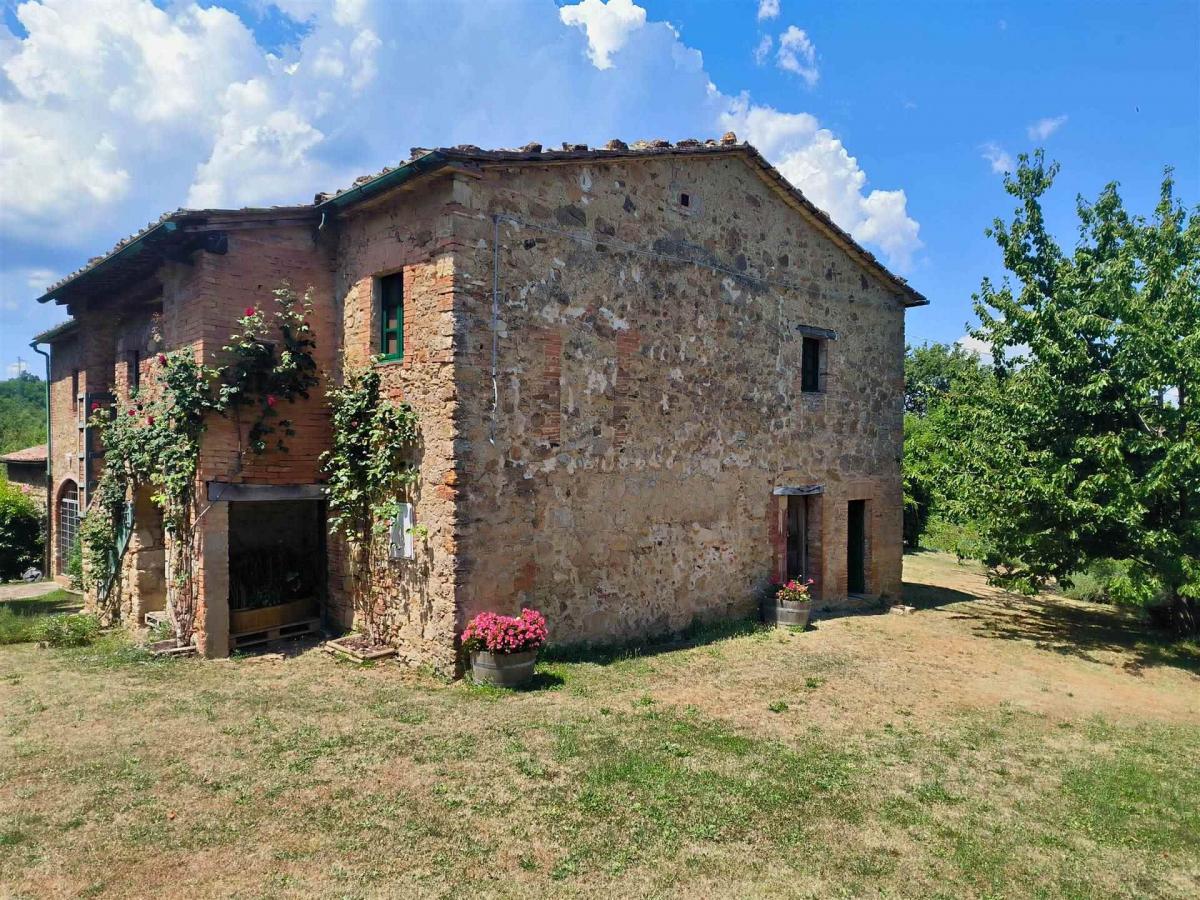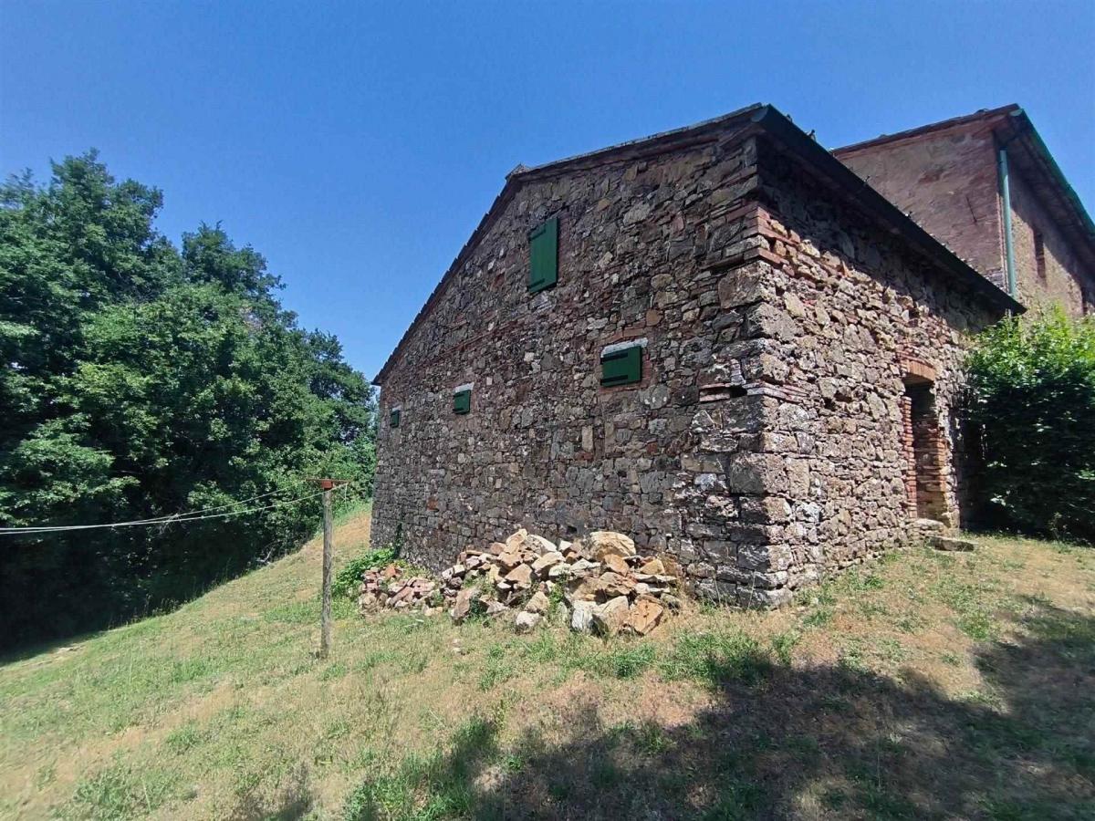 Set in the heart of the lush Tuscan woods, this captivating stone farmhouse in Radicondoli offers a unique retreat from the modern world. With a total surface of around 473 sqm, the property is arranged on two levels connected by an external staircase. The ground floor, partially renovated, spans approximately 223 sqm and offers direct access to the garden, featuring spacious and functional rooms. The upper floor, measuring about 173 sqm, serves as the main living area and includes ten rooms: five bedrooms, two bathrooms, and a large rustic-style kitchen. Though the house lacks modern heating, its large fireplace provides a cozy, welcoming ambiance perfect for use in the warmer seasons. Stone walls, exposed wooden beams, and terracotta floors exude timeless character and warmth. The house is ideal for those seeking a secluded refuge, with the potential to be enhanced by modern additions like heat pump systems and photovoltaic panels.