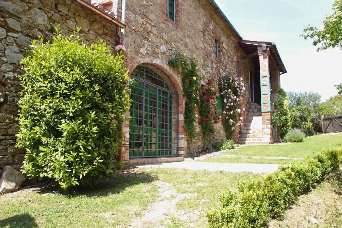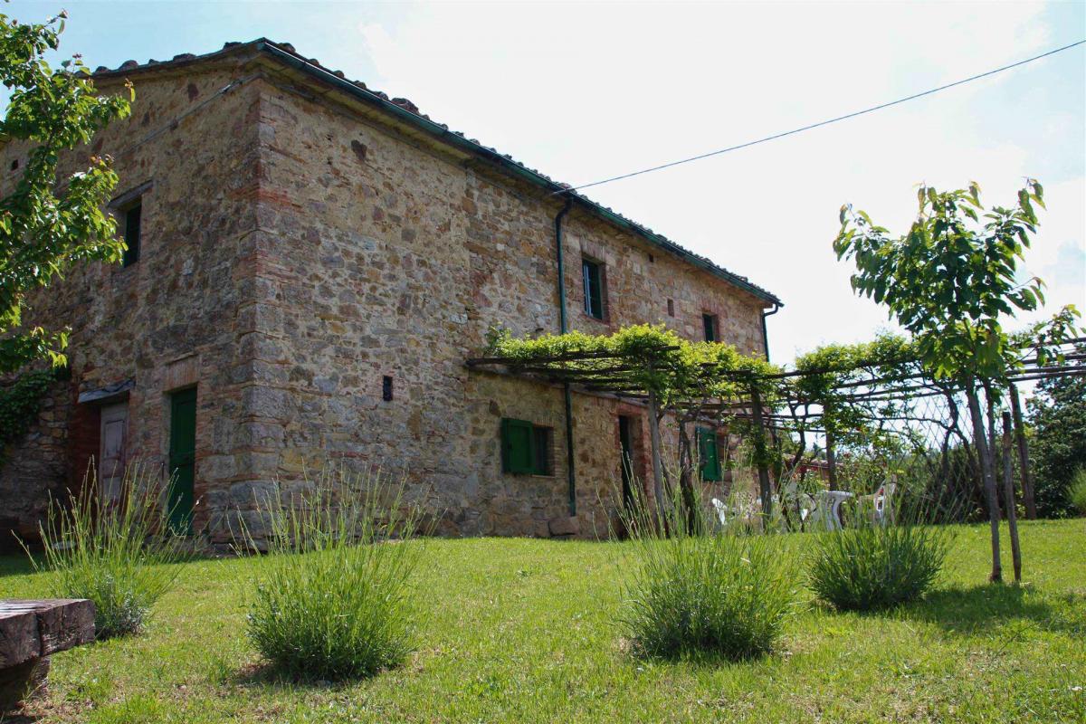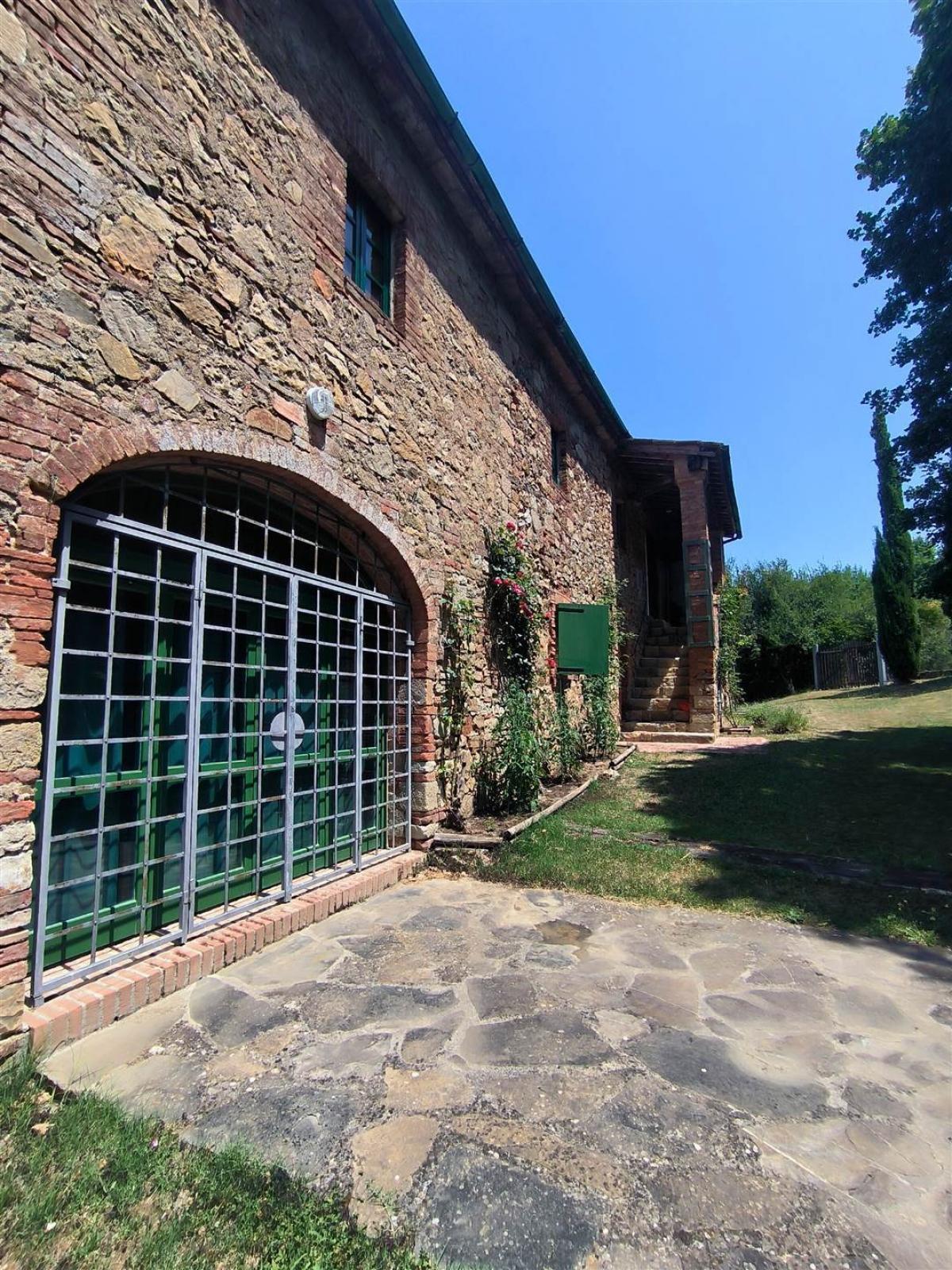 Set in the heart of the lush Tuscan woods, this captivating stone farmhouse in Radicondoli offers a unique retreat from the modern world. With a total surface of around 473 sqm, the property is arranged on two levels connected by an external staircase. The ground floor, partially renovated, spans approximately 223 sqm and offers direct access to the garden, featuring spacious and functional rooms. The upper floor, measuring about 173 sqm, serves as the main living area and includes ten rooms: five bedrooms, two bathrooms, and a large rustic-style kitchen. Though the house lacks modern heating, its large fireplace provides a cozy, welcoming ambiance perfect for use in the warmer seasons. Stone walls, exposed wooden beams, and terracotta floors exude timeless character and warmth. The house is ideal for those seeking a secluded refuge, with the potential to be enhanced by modern additions like heat pump systems and photovoltaic panels.
