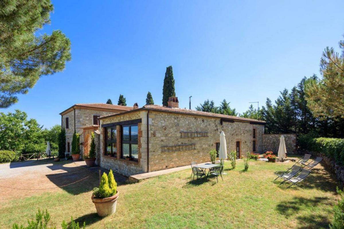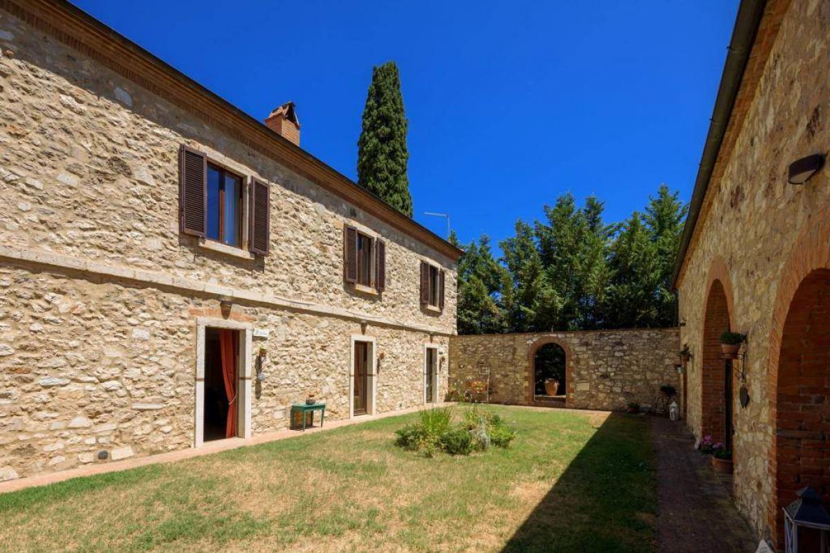 Nestled in the heart of the Crete Senesi, this stunning agriturismo offers a rare blend of breathtaking views, privacy, and comfort. The property, recently renovated with great attention to detail, retains all the typical features of Tuscan farmhouses: a stone facade, exposed beam ceilings, terracotta floors, and bright, spacious interiors.
