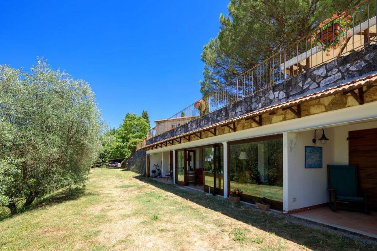 The property also includes cultivated land, with 2 hectares of vineyards, approximately 100 olive trees, and a small historic cellar. Fully fenced and equipped with an automatic gate, it offers modern amenities such as Wi-Fi, GPL heating, municipal water supply, and electricity.
