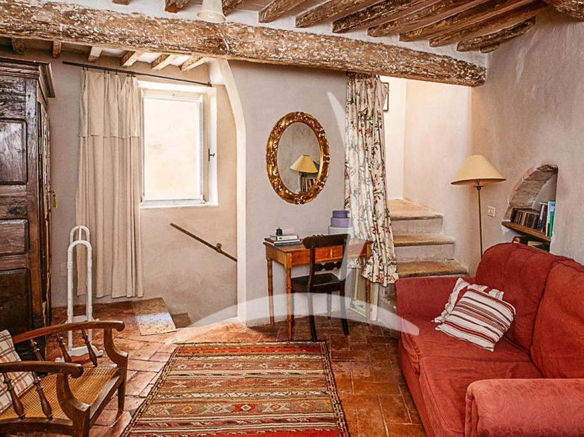 Located in the historic center of Rapolano Terme, this terraced house of approx. 113 sqm is arranged over four levels, fully restored to preserve its Tuscan architectural features: brick and stone walls, wooden beams, terracotta floors, and wooden shutters.